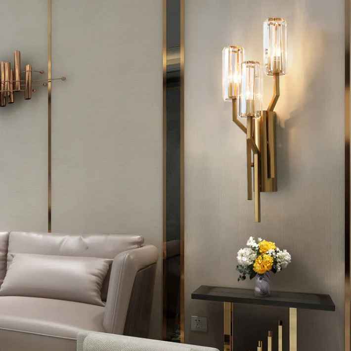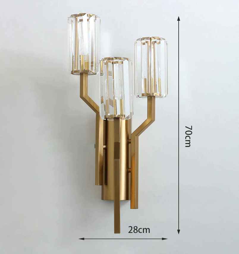 Requires 3 E-14 Bulbs (Not Included) Design: Post-modern creative design wall-mounted fixture, gold metal tube & transparent crystal tube combination wall lamp, to meet the auxiliary lighting needs of your room. Size 60x25Cm Modern Industrial Style One-Light Indoor Wall Fixture Is Perfect For Use In Restaurant, Bedroom, Living Room, Bedside, Cafe, Bar, Corridor, Balcony. A Perfect Match With Retro-Industrial Style: Wood Color, Minimalist Wood Glass Shade Wall Sconces. This Vintage Antique Wall Lamp Comes With Every Element You Need For Creating A Retro-Industrial Style Environment. This Wall Sconce Is High Quality Chrome Crystal Light And Well Constructed. Circular Shape For Extra Bright Light Which Spreads On A Larger Area