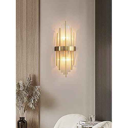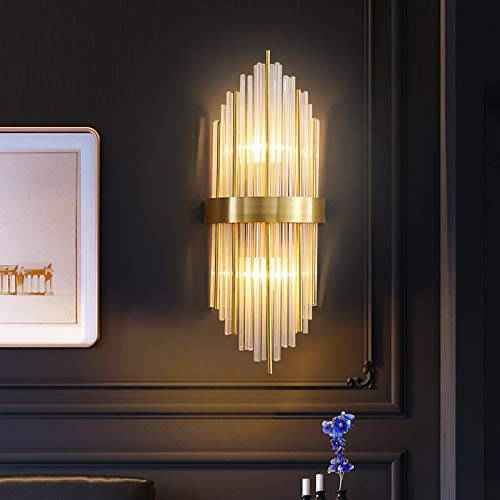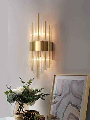 Requires 2 E-14 Bulbs (Not Included) Design: Post-modern creative design wall-mounted fixture, gold metal tube & transparent crystal tube combination wall lamp, to meet the auxiliary lighting needs of your room. Modern Industrial Style One-Light Indoor Wall Fixture Is Perfect For Use In Restaurant, Bedroom, Living Room, Bedside, Cafe, Bar, Corridor, Balcony. A Perfect Match With Retro-Industrial Style: Wood Color, Minimalist Wood Glass Shade Wall Sconces. This Vintage Antique Wall Lamp Comes With Every Element You Need For Creating A Retro-Industrial Style Environment.