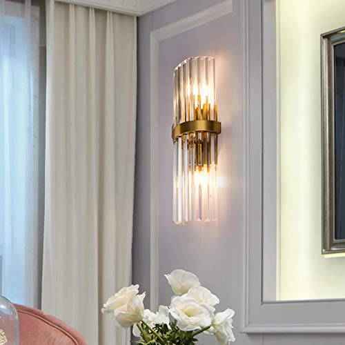 Requires 2 E-14 Bulbs (Not Included) Design: Post-modern creative design wall-mounted fixture, gold metal tube & transparent crystal tube combination wall lamp, to meet the auxiliary lighting needs of your room. Modern Industrial Style One-Light Indoor Wall Fixture Is Perfect For Use In Restaurant, Bedroom, Living Room, Bedside, Cafe, Bar, Corridor, Balcony. A Perfect Match With Retro-Industrial Style: Wood Color, Minimalist Wood Glass Shade Wall Sconces. This Vintage Antique Wall Lamp Comes With Every Element You Need For Creating A Retro-Industrial Style Environment.