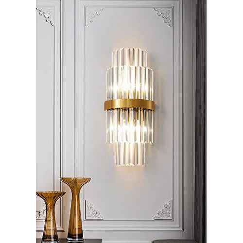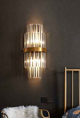 Requires 2 E-14 Bulbs (Not Included) Design: Post-modern creative design wall-mounted fixture, gold metal tube & transparent crystal tube combination wall lamp, to meet the auxiliary lighting needs of your room. Modern Industrial Style One-Light Indoor Wall Fixture Is Perfect For Use In Restaurant, Bedroom, Living Room, Bedside, Cafe, Bar, Corridor, Balcony. A Perfect Match With Retro-Industrial Style: Wood Color, Minimalist Wood Glass Shade Wall Sconces. This Vintage Antique Wall Lamp Comes With Every Element You Need For Creating A Retro-Industrial Style Environment.