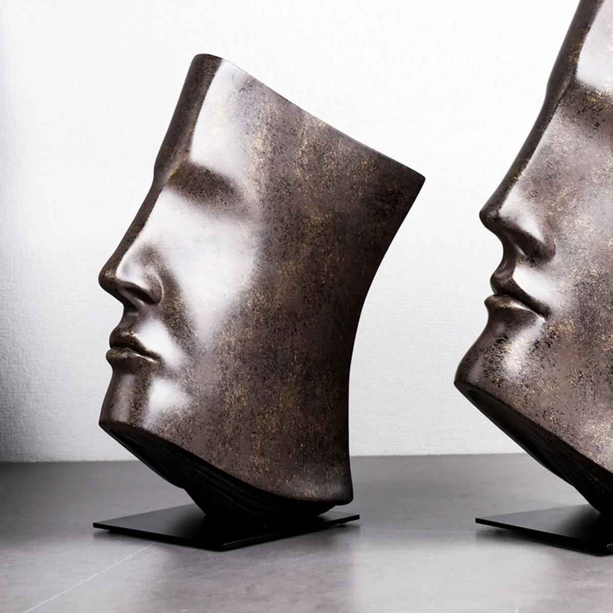 This statue embraces the silence between a loving couple.Words don't need to be spoken for this couple to embrace the beauty of silence and emotion.The deep golden statue sits on the black base.This statue will give any space an art gallery feel