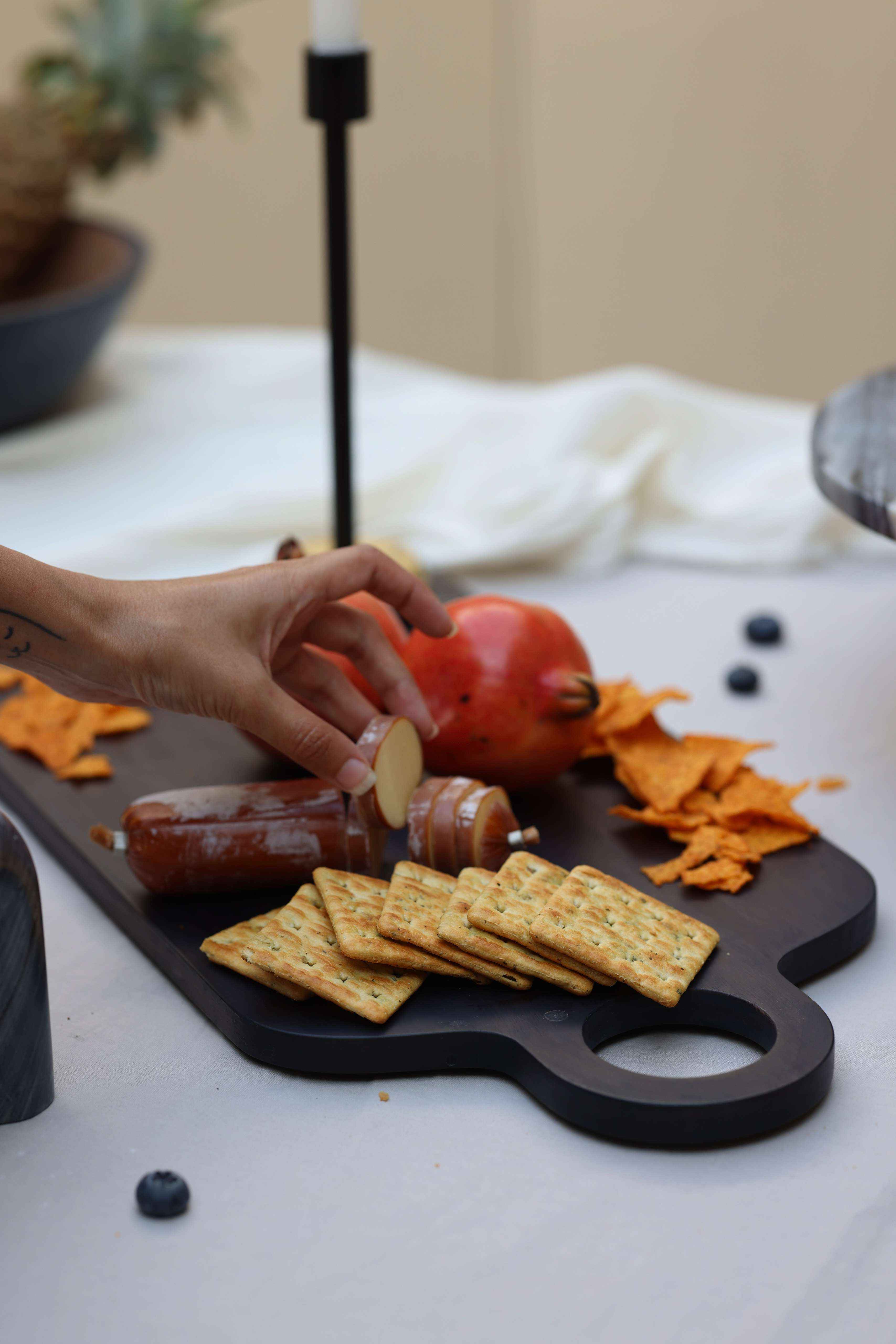 Sexy, Restrained and Elegant - the Ash collection brings your expression to the table - Use this as to build a cheese platter, serve crackers or fruits! - Soft Black finish