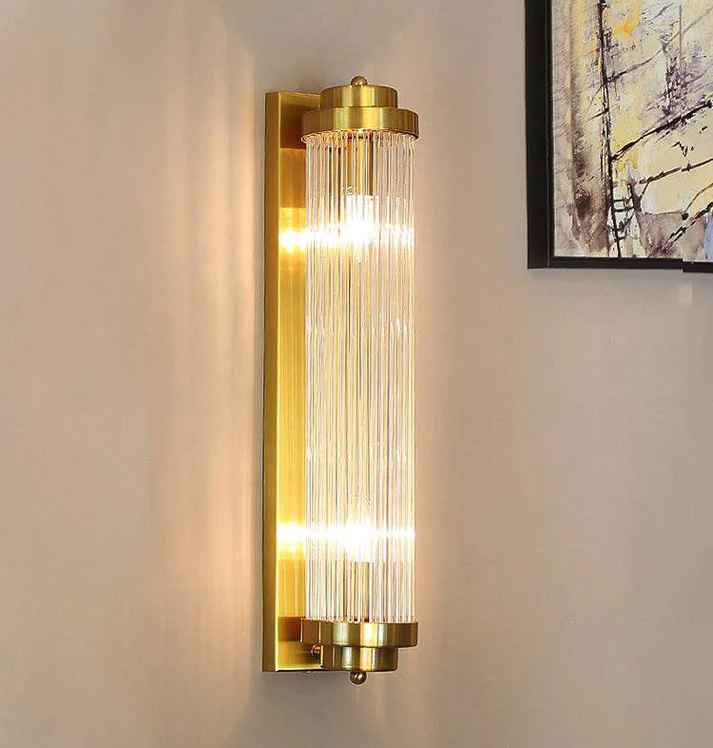 Requires 2 E-14 Bulbs (not included) Design: Post-modern creative design wall-mounted fixture, gold metal tube & transparent crystal tube combination wall lamp, to meet the auxiliary lighting needs of your room. Modern Industrial Style One-Light Indoor Wall Fixture Is Perfect For Use In Restaurant, Bedroom, Living Room, Bedside, Cafe, Bar, Corridor, Balcony. A Perfect Match With Retro-Industrial Style: Wood Color, Minimalist Wood Glass Shade Wall Sconces. This Vintage Antique Wall Lamp Comes With Every Element You Need For Creating A Retro-Industrial Style Environment. This Wall Sconce Is High Quality Chrome Crystal Light And Well Constructed. Circular Shape For Extra Bright Light Which Spreads On A Larger Area