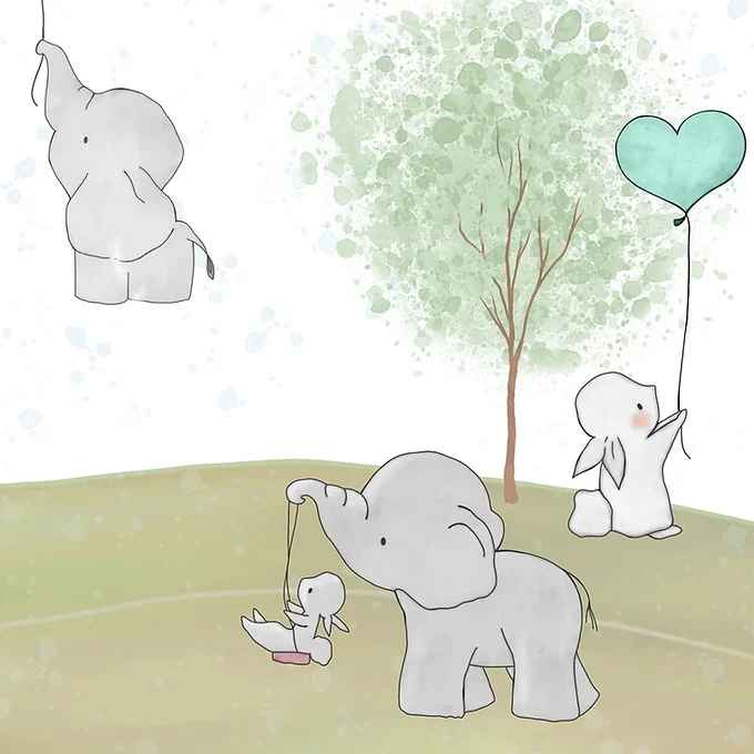 DownloadAdorable Bunnies and Elephants, Nursery Room Wallpaper