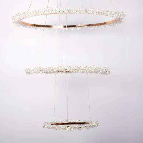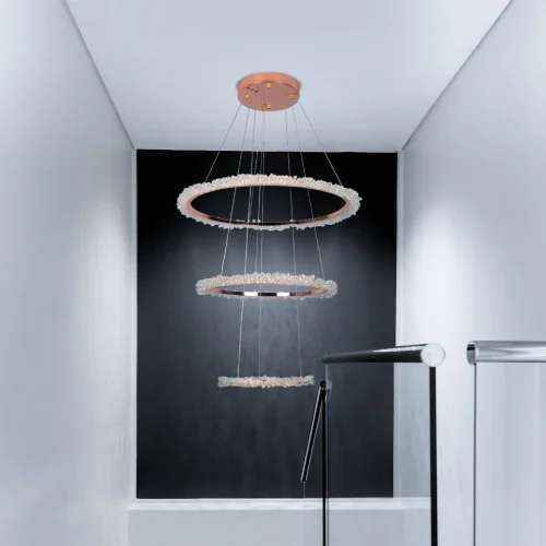 Traditional elements meet modern design. This Agena light comes with 3 tier energy-efficient LED rings with elaborate crystal beading. The sparkling crystal are complemented by a shiny copper finish, resulting in an undeniably elegant and glamorous look.?