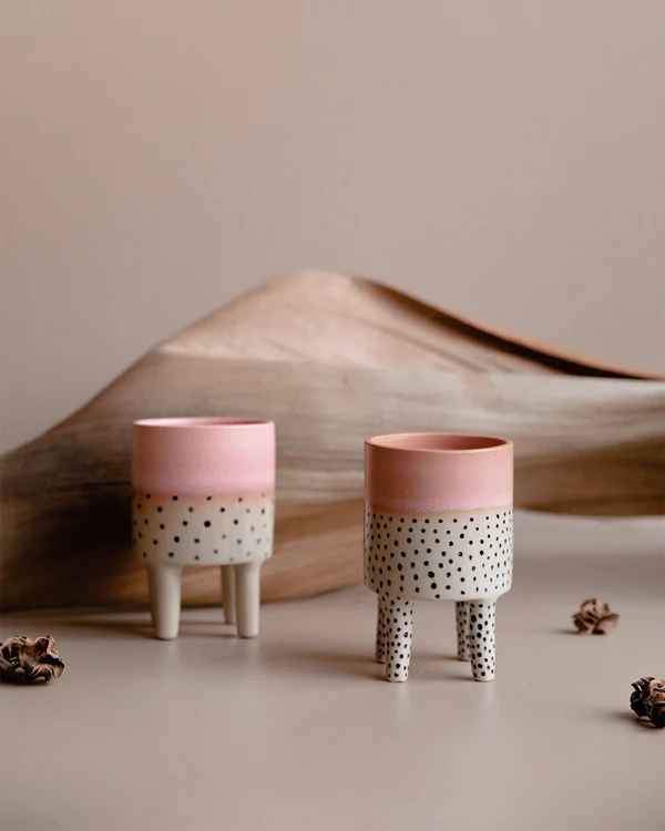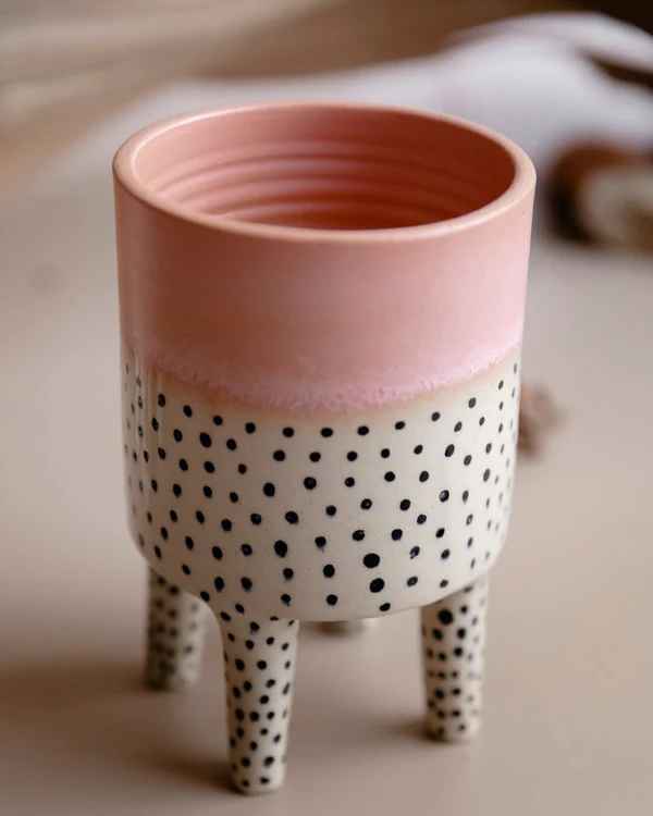 This pink ceramic pot with soothing colors & playful design will add a pop of color to your work desk or center table.