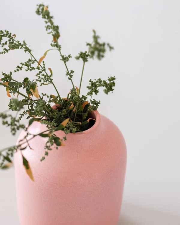 This simple and modern pink ceramic Alcea vase is a perfect piece for your living room.