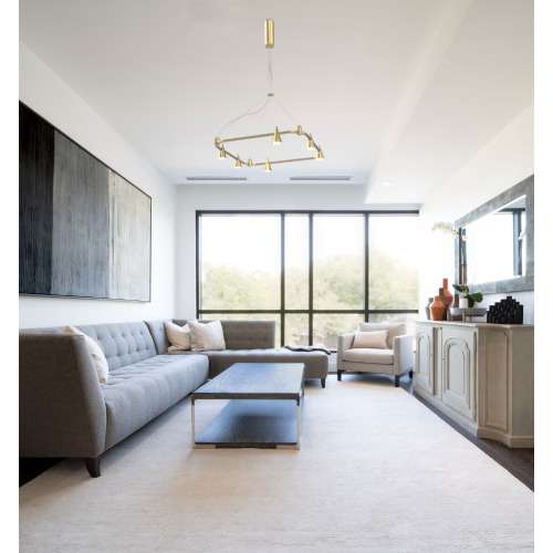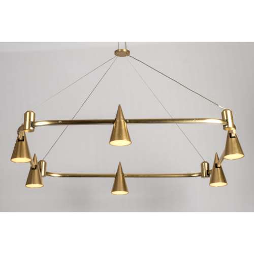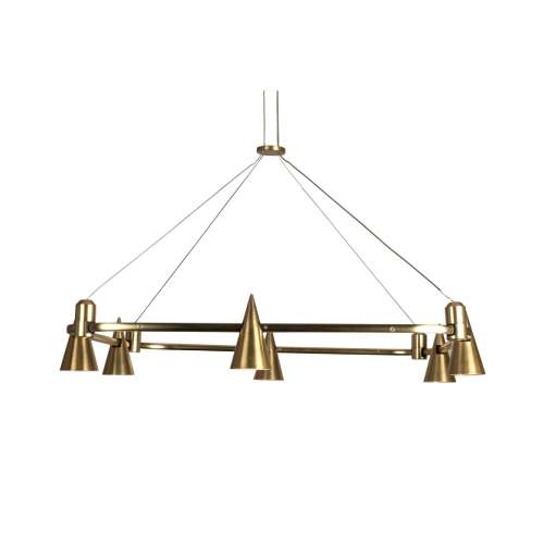 Add a twist of charm to your contemporary or traditional space with this stunning cone based square ALPHA L chandelier. Eight lights glow from copper cone styled shades. A transitional design is perfect for any decor. It has an industrial flair that will pair harmoniously with restoration-vintage decor.