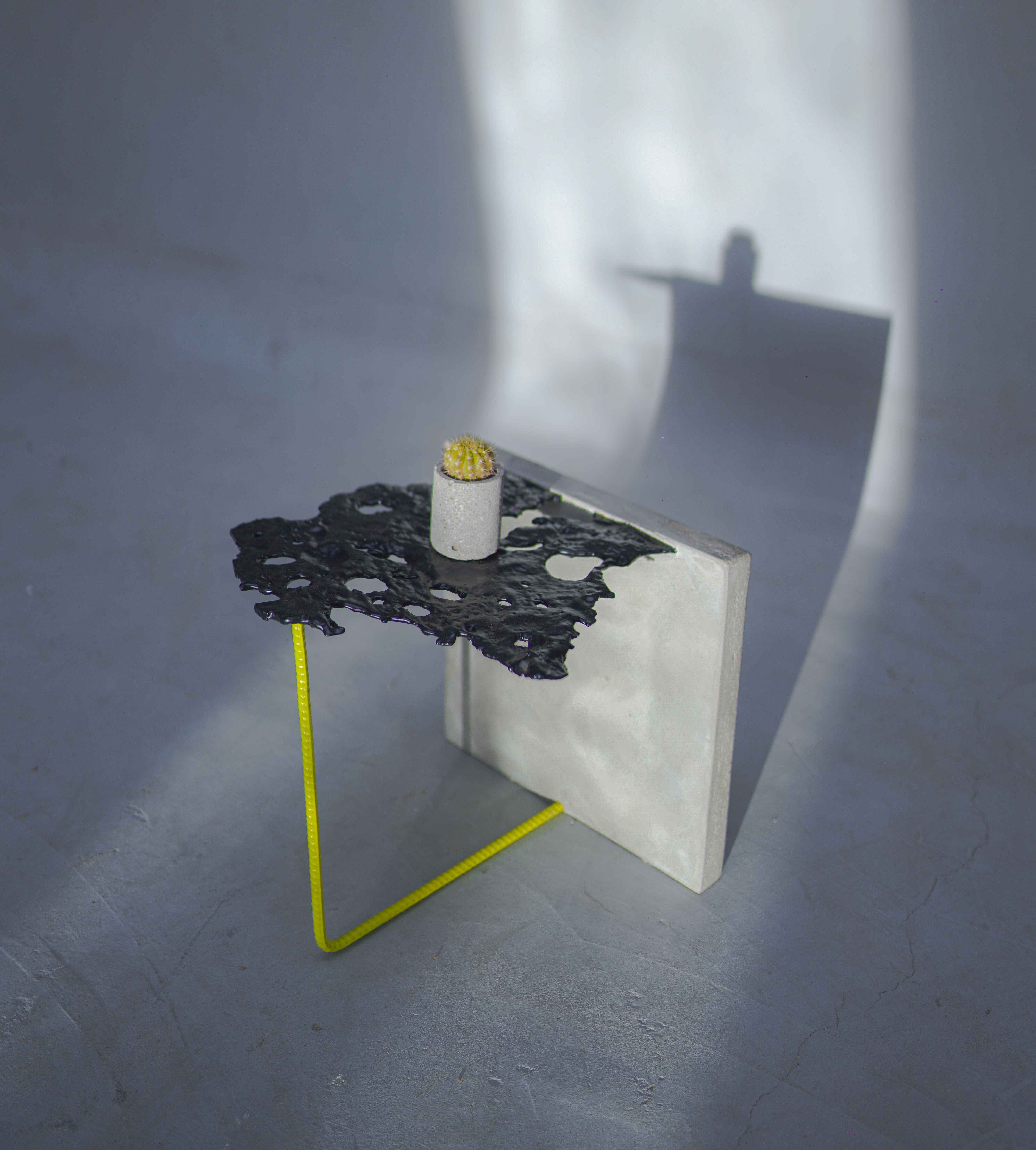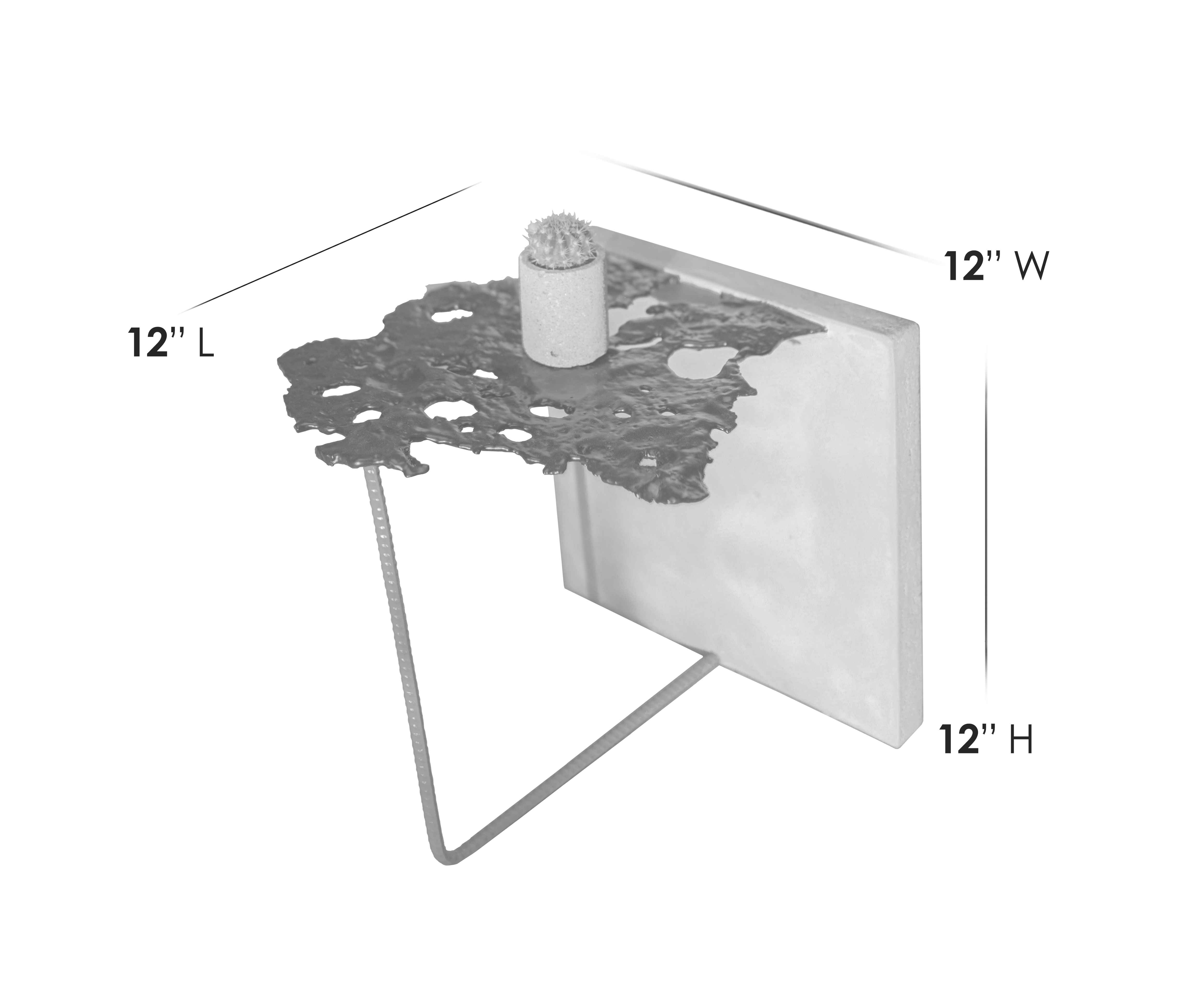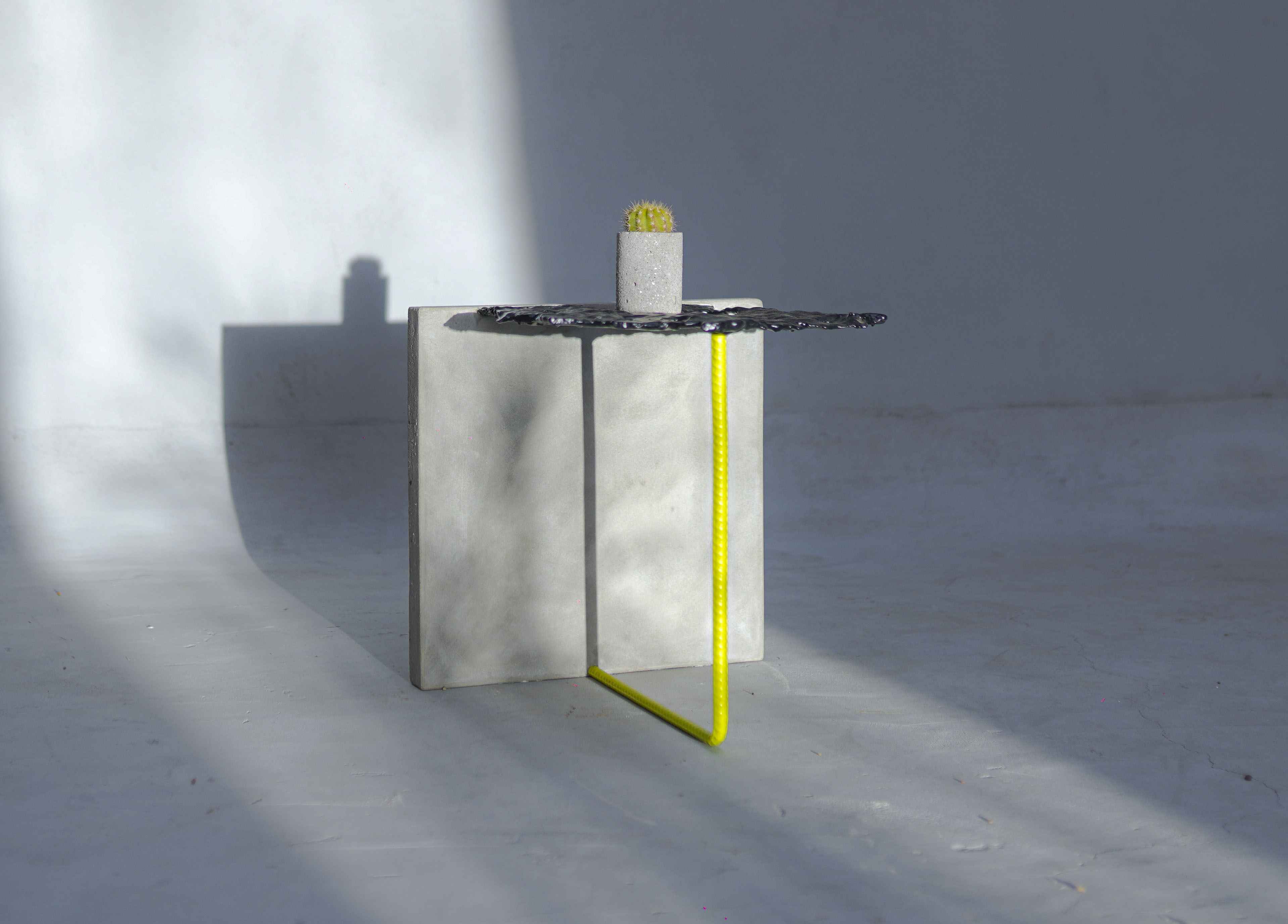 Creative minimalism is the core inspiration for this artistic table. As evident from the picture, the flattened top is made of waste metal slag shaped sporadically to resemble the form of amoeba. The top is supported in the most minimalistic way with a striking neon steel bar and concrete in the background. This artistic and unique style of side table will add an abstract yet appealing look to your space.