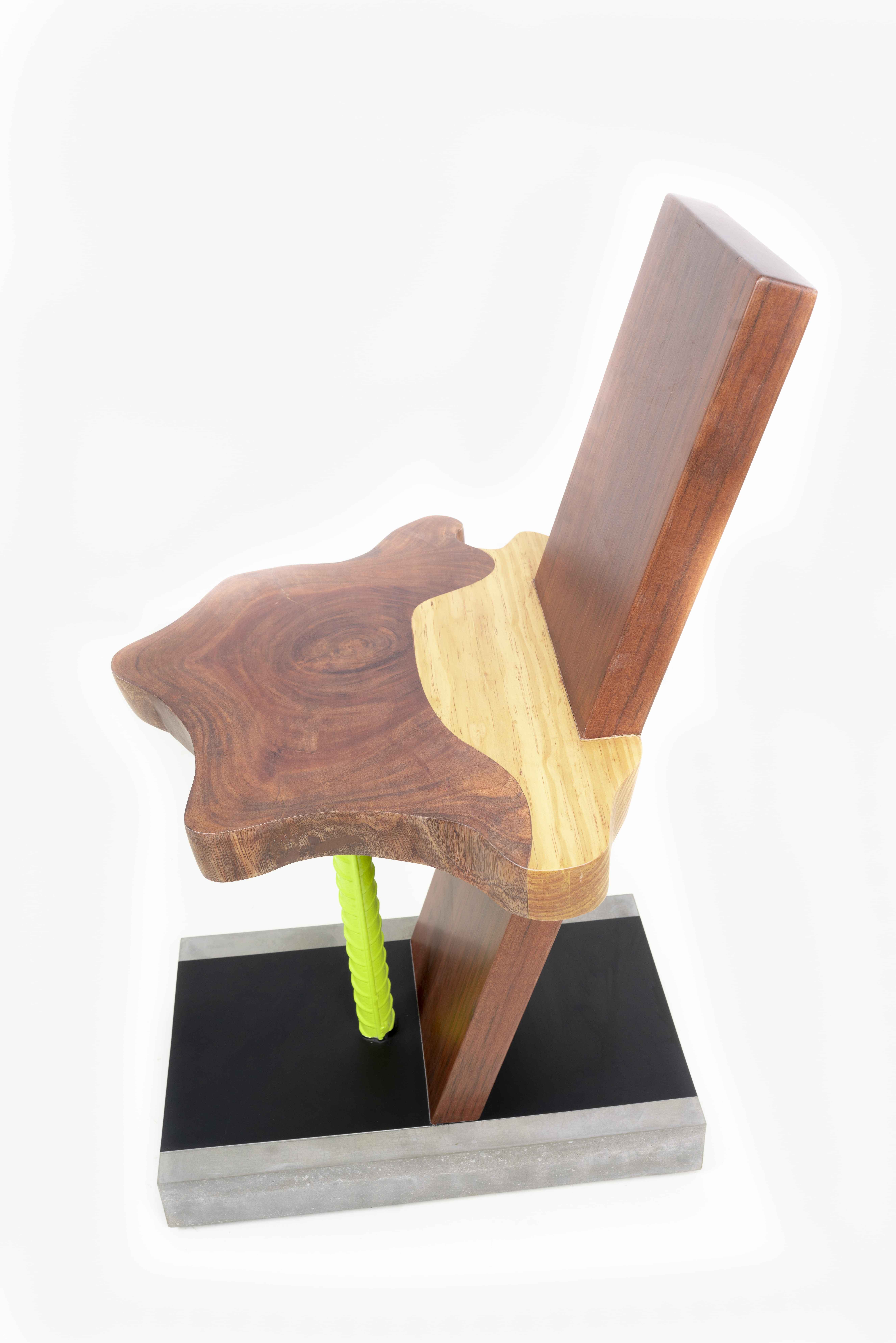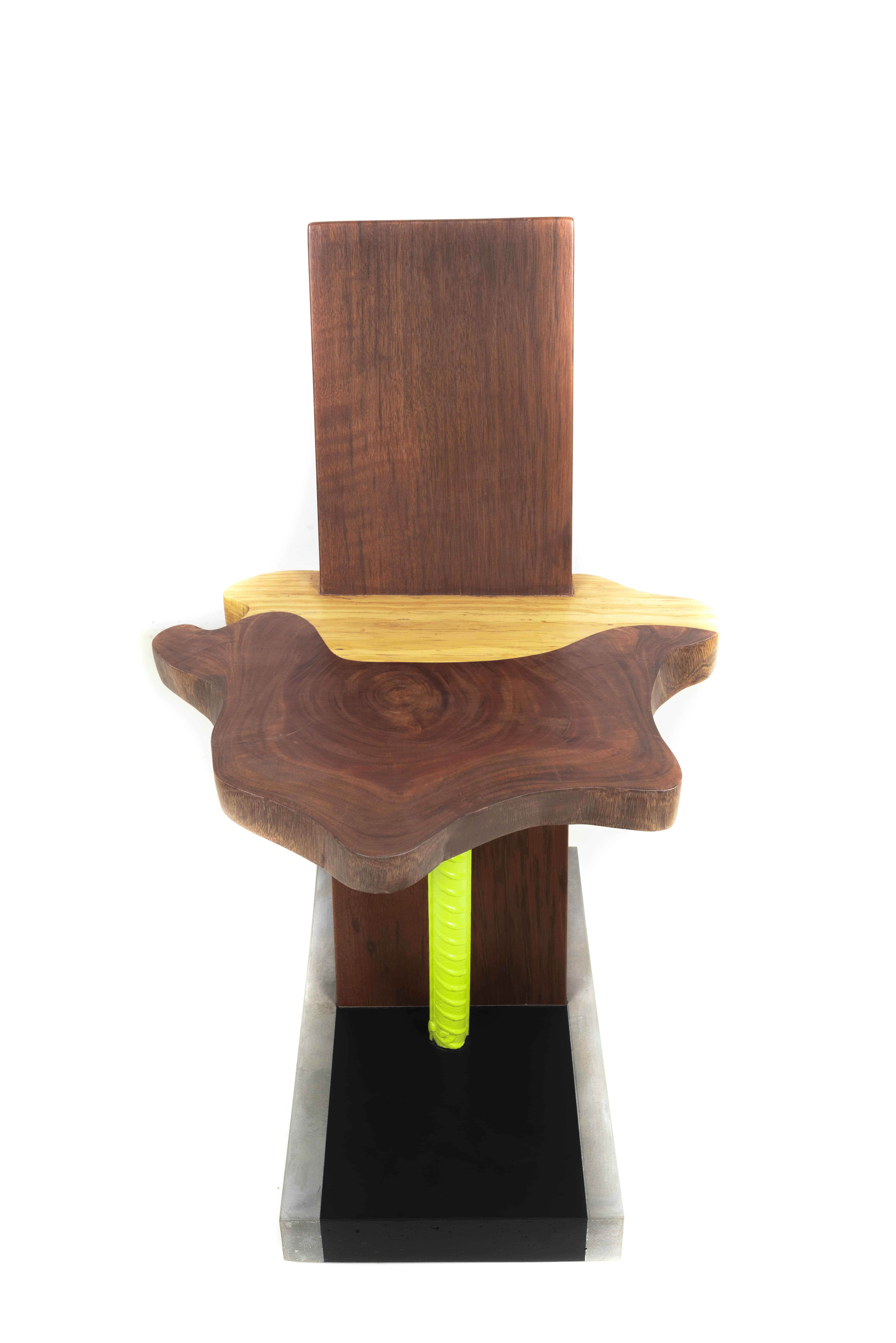 As a classy model, this one-of-a-kind angled accent chair is recycled and designed using reclaimed wildwood. The asymmetrical seating is balanced geometrically on a neon steel bar over a leveled concrete base. The back support is crafted by reclaimed wood that falls dramatically at a point, setting drama from all angles. It also has wheels for quick and easy movements.