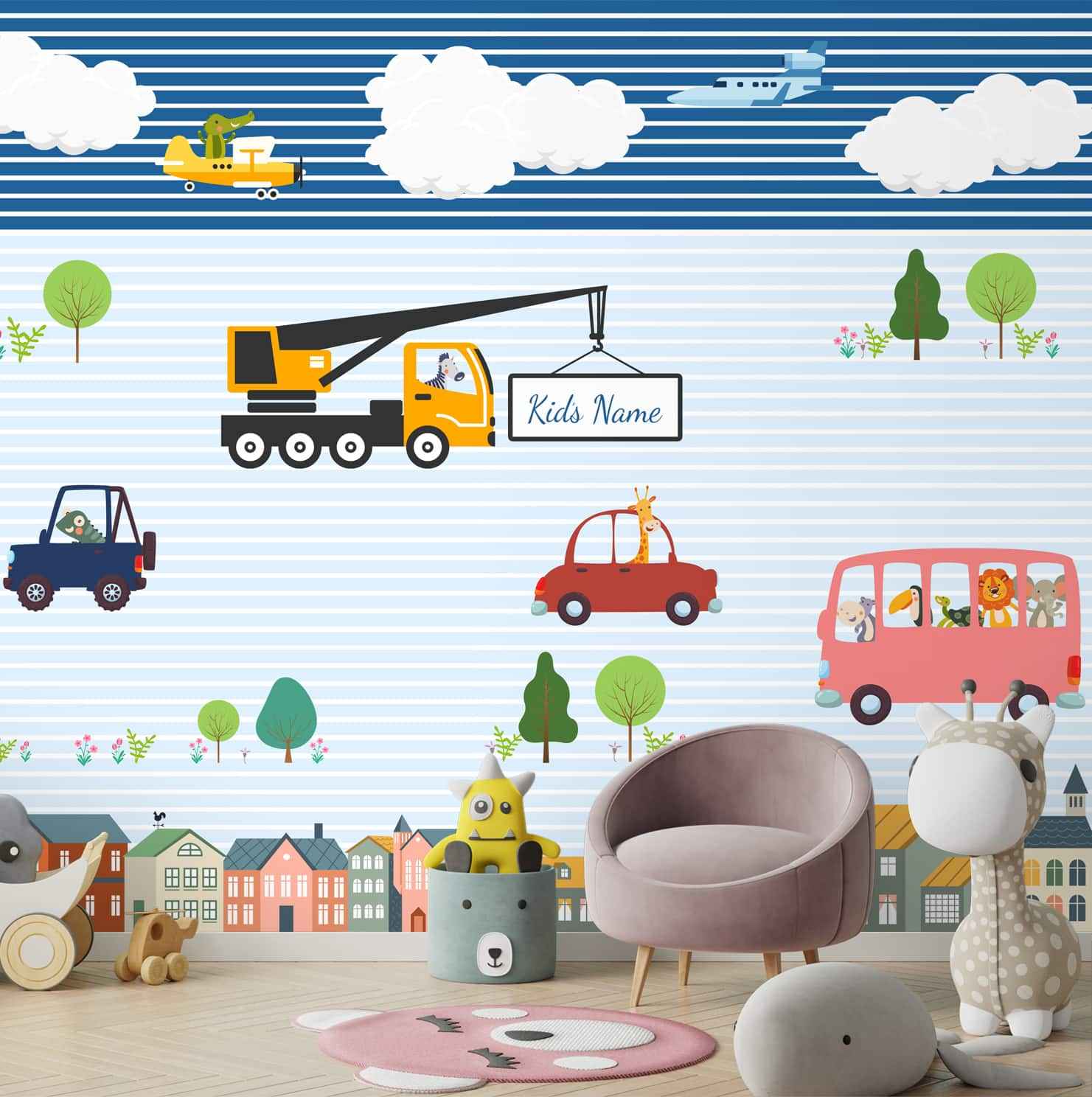 Animals Driving cars and planes Personalise Theme for Kids Room
