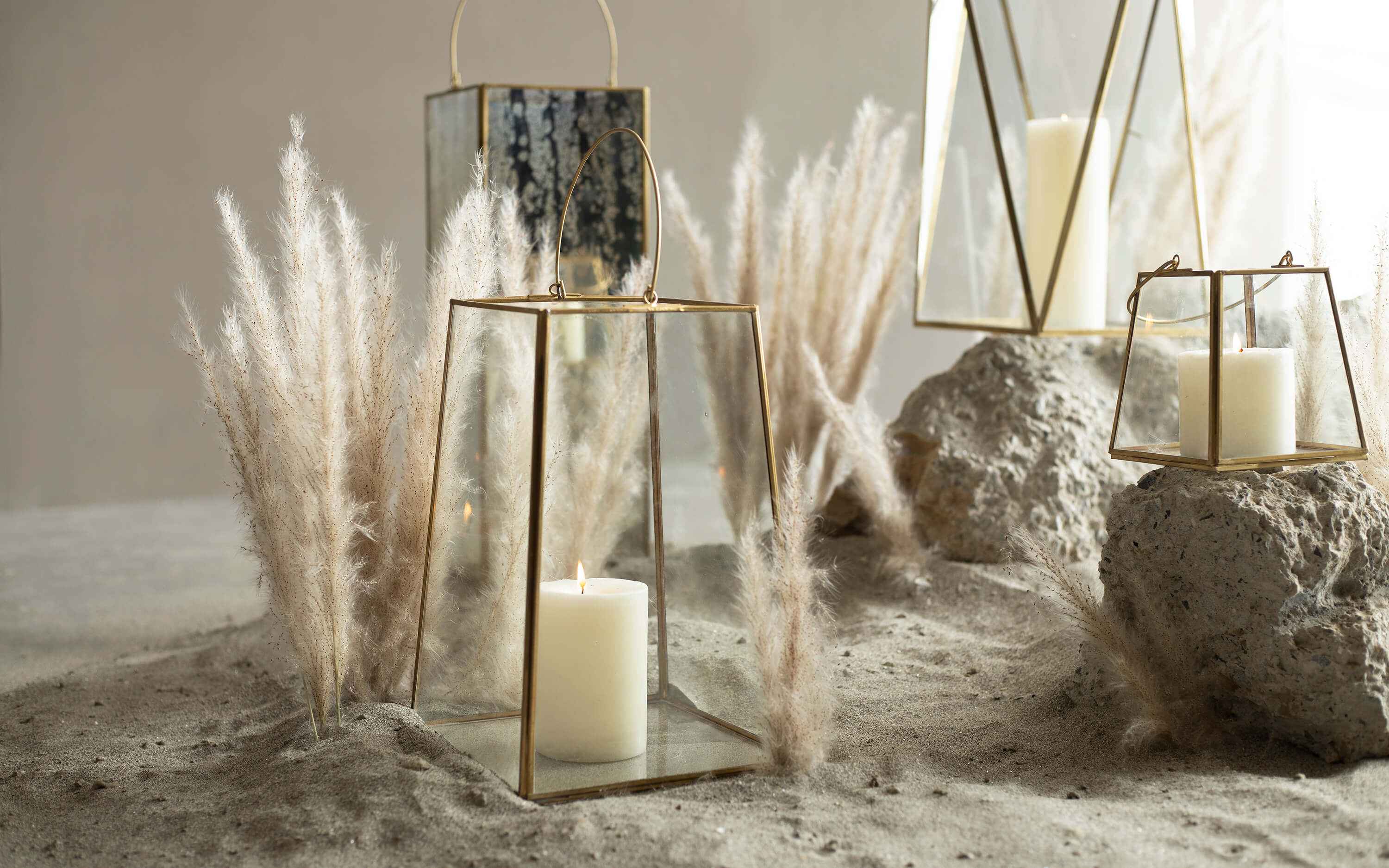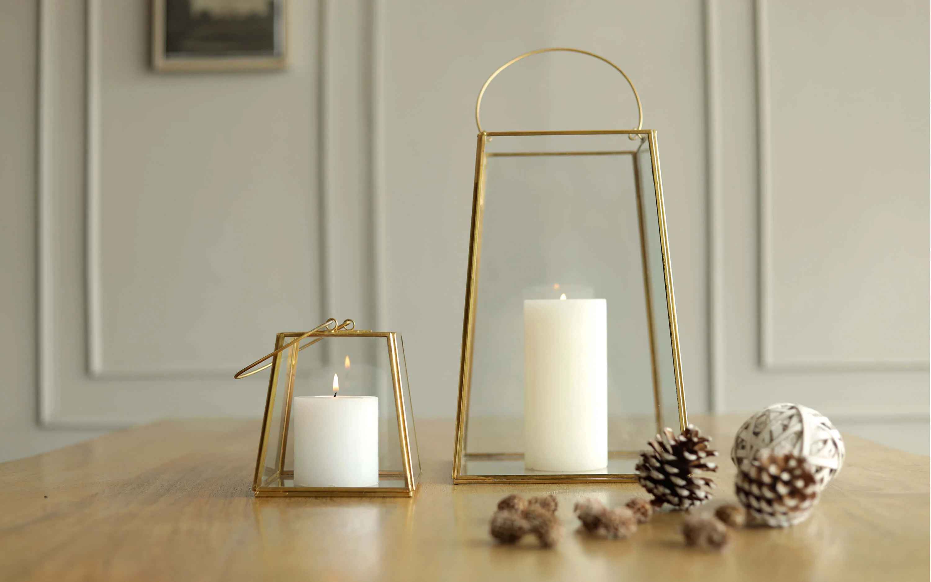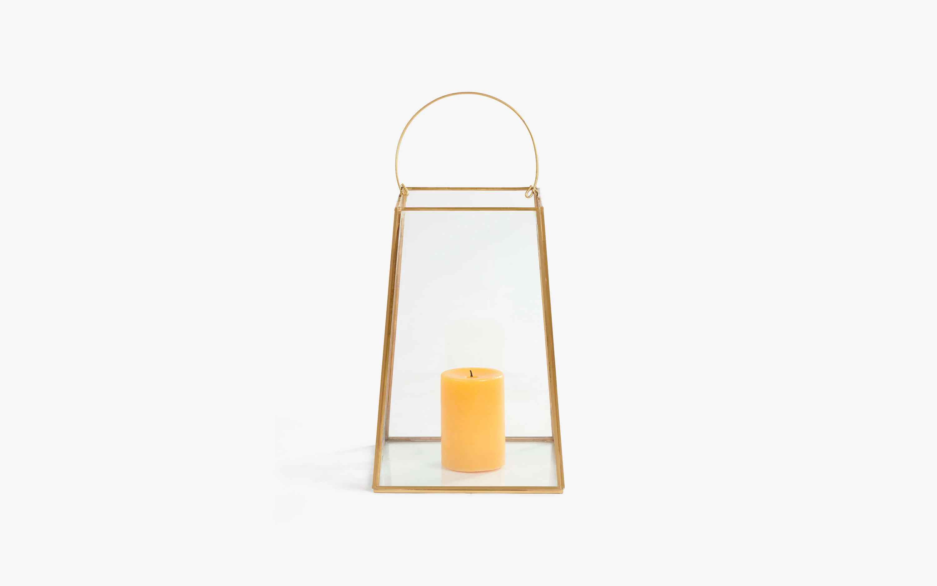 Classic and timeless, the Anna Lanterns are the perfect choice to either gift or enhance the warm corners of your homes. The clean and linear brass metal lines and clear glass make them effortlessly stylish to work with. Place in pairs or hang them with lantern holders to add festive glam to your homes! "Depending on your screen settings and resolution on your device there may be a slight variance in fabric color and wood polish of the image and actual product. Wood grains will vary from product to product in case of solid wood furniture."