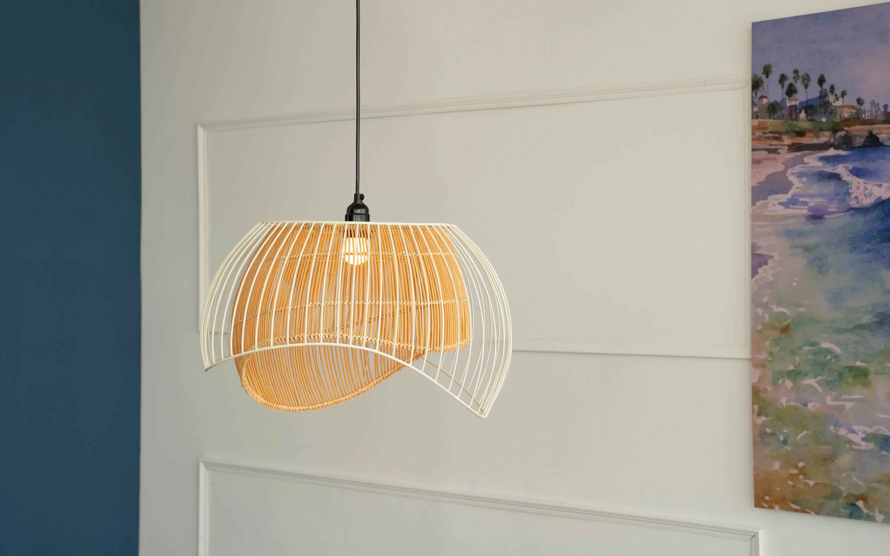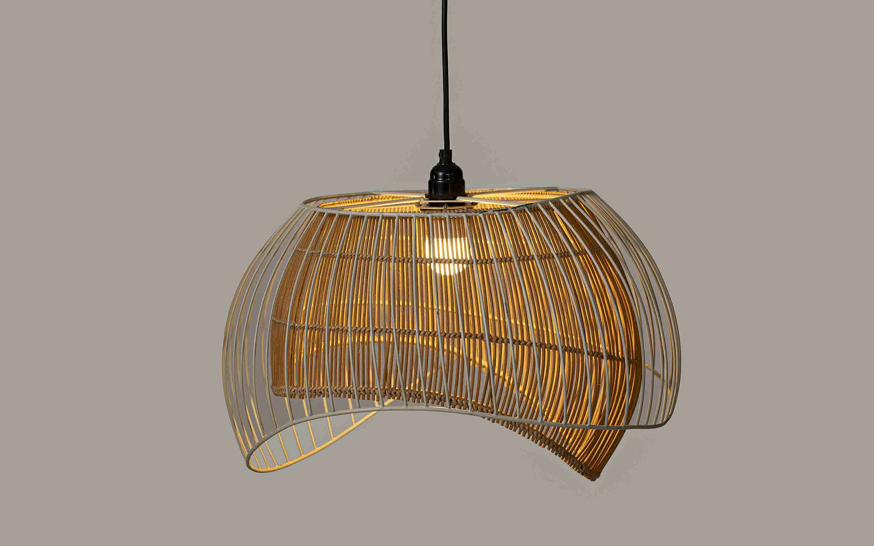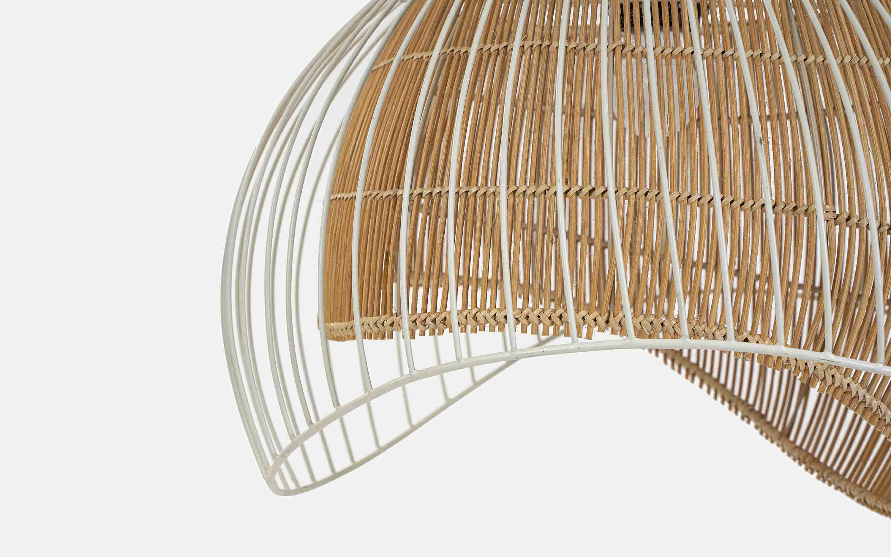 The Aphro collection is inspired by Mediterranean style and combines features that blend the best of old-world style with modern lifestyles. The inside shade is meticulously woven in cane by our skilled artisans and adds a sharp contrast to the modern contemporary metal lines on the outside. The Aphro Hanging Lamp features a sleek and modern design that is perfect for any home. The lamp is made of high quality materials, including iron and cane, and has a white finish that will complement any décor. The lamp also features hanging lights that are perfect for any room in the house, including the living room, dining room, or bedroom. The Aphro Hanging Lamp is an elegant and stylish addition to any home. "Depending on your screen settings and resolution on your device there may be a slight variance in fabric color and wood polish of the image and actual product. Wood grains will vary from product to product in case of solid wood furniture."