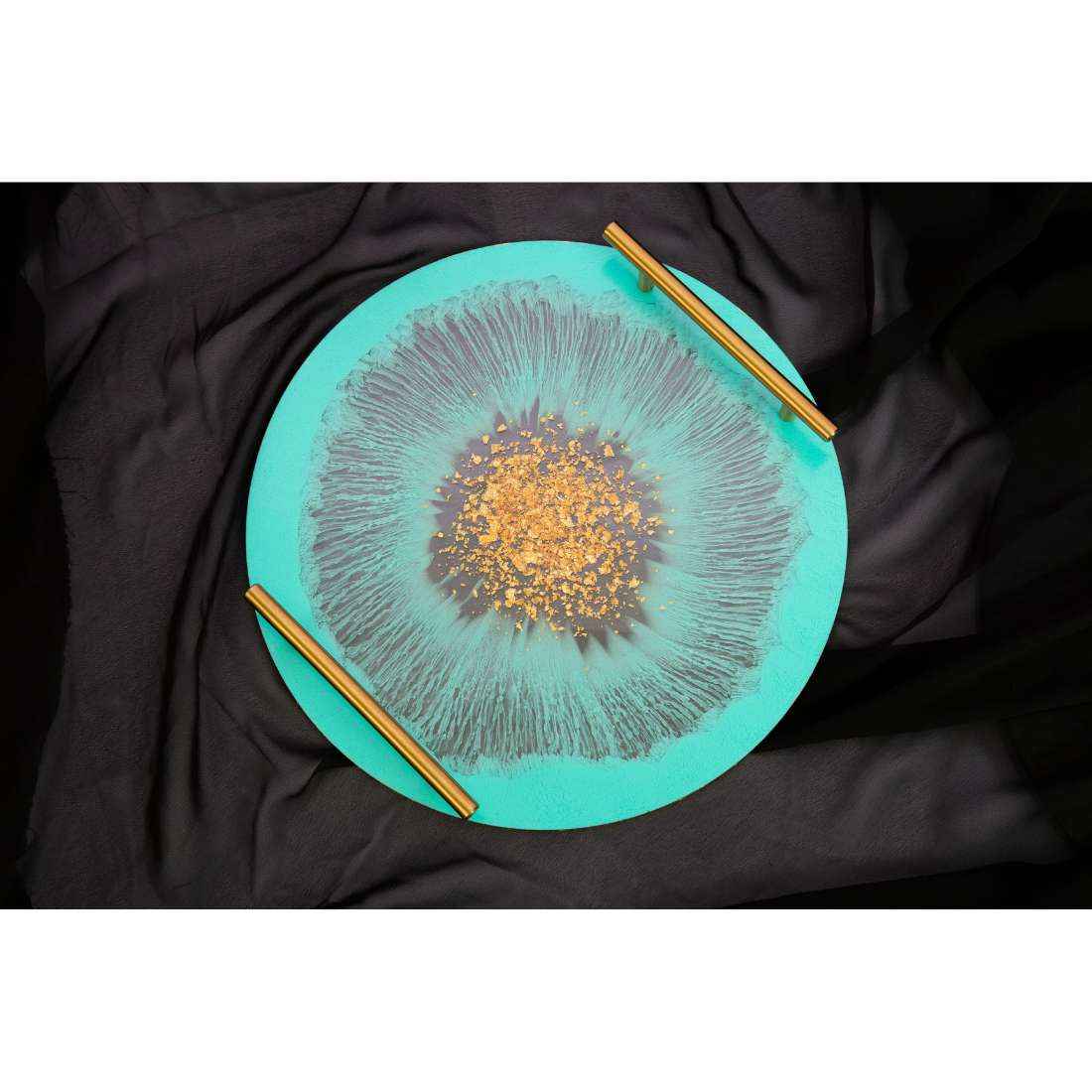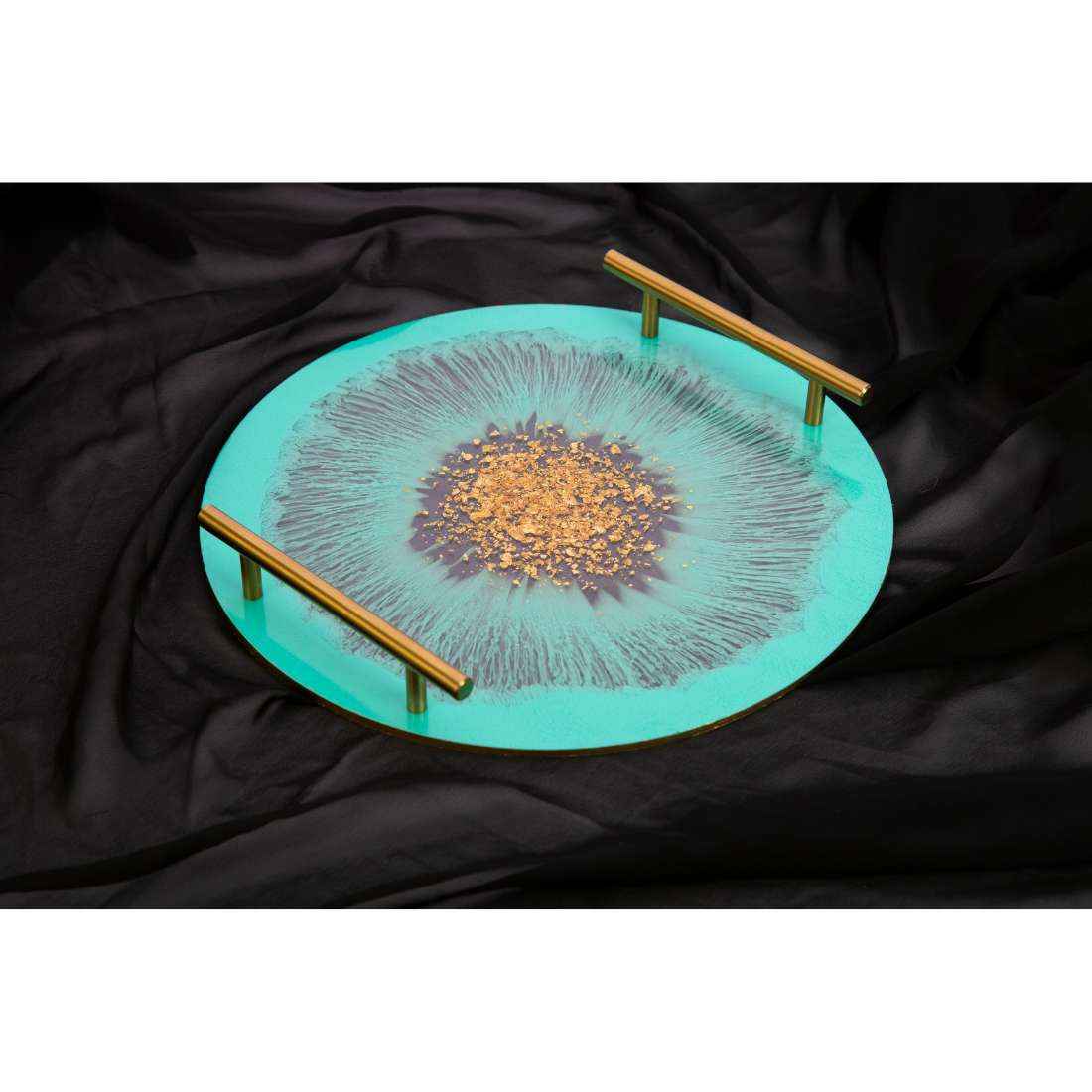 HN Hues Trays are made of Resin Epoxy, Pigment, gold flakes, Metallic gold sketch pen for the outline, made in resin moulds, Handcraft, 100% Waterproof and Washable, long-lasting and Durability, the bearing capacity of this Bowl is up to 10 kg. It comes with two attach stylish gold finish handles to carry the tray. It can be used for Dining & Serving or Even for storing personal items. Perfect for neatly arranging your jewellery, earrings, necklaces, bracelets, rings, brooches, pins, watches, makeup and more on your jewellery tray, can also be used as a dessert dish, fruit plate or snack tray.