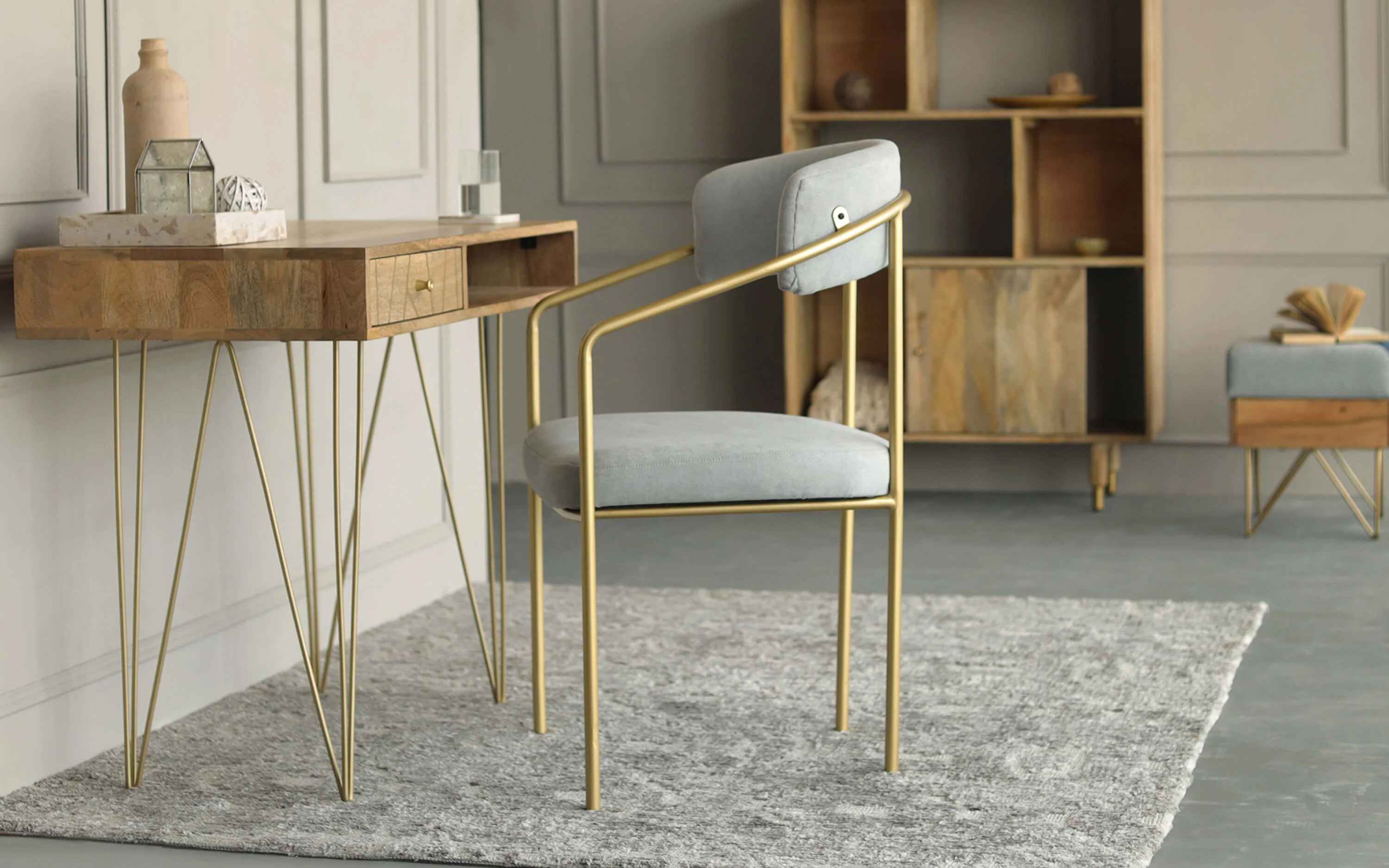 Art Deco would be called a movement that was defined by its bold features and often eclectic in its concept. The brass legs and rivet details in the collection give it a cool urban edge. It’s an easy way to bring an on-trend industrial look to your home. "Depending on your screen settings and resolution on your device there may be a slight variance in fabric color and wood polish of the image and actual product. Wood grains will vary from product to product in case of solid wood furniture."