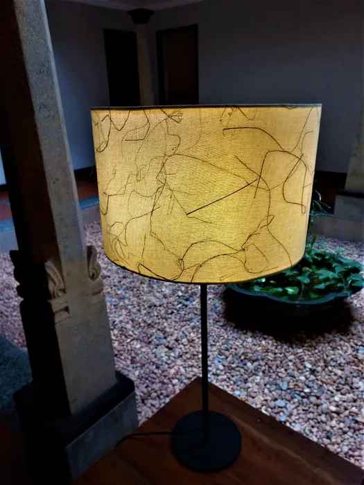 The Banana Fibre Ivory Floor Lamp is a beautifully designed light that will add a touch of elegance to any room. The fabric is natural banana fibre finished on a round shade. The shade is mounted on a high gloss powder coated iron stand with black finish. There is pre-treatment done on products to make them rust and dust free. The light adds a warmth and soft ambience to any room and can be used in a lounge, living room, bed room or study to add both illumination and atmosphere to your settings.