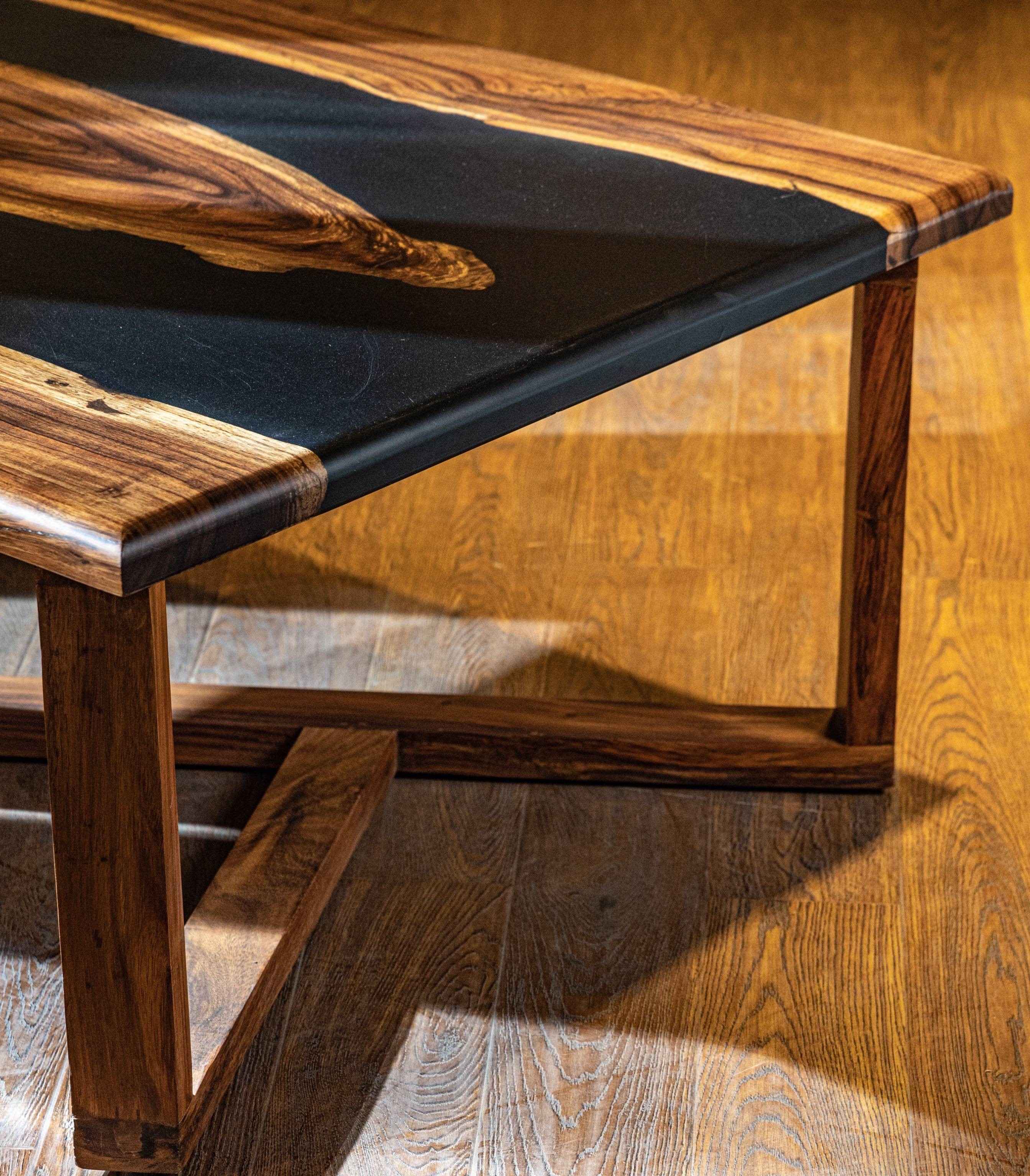 Our Barbossa Centre table is an exploration of organic allure and radical simplicity. Barbossa spotlights the complex and swirling patterns of natural wood, a timeless piece of furniture. Crafted using solid Indian Rosewood and Epoxy Resin, this elegant table will add gravitas and glamour to your living room or workspace.