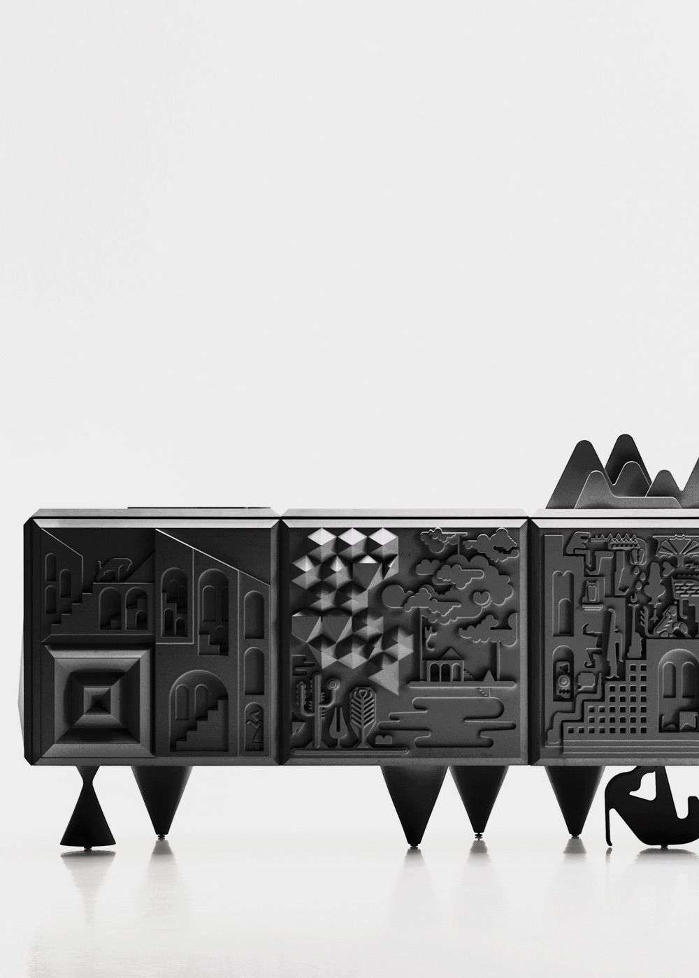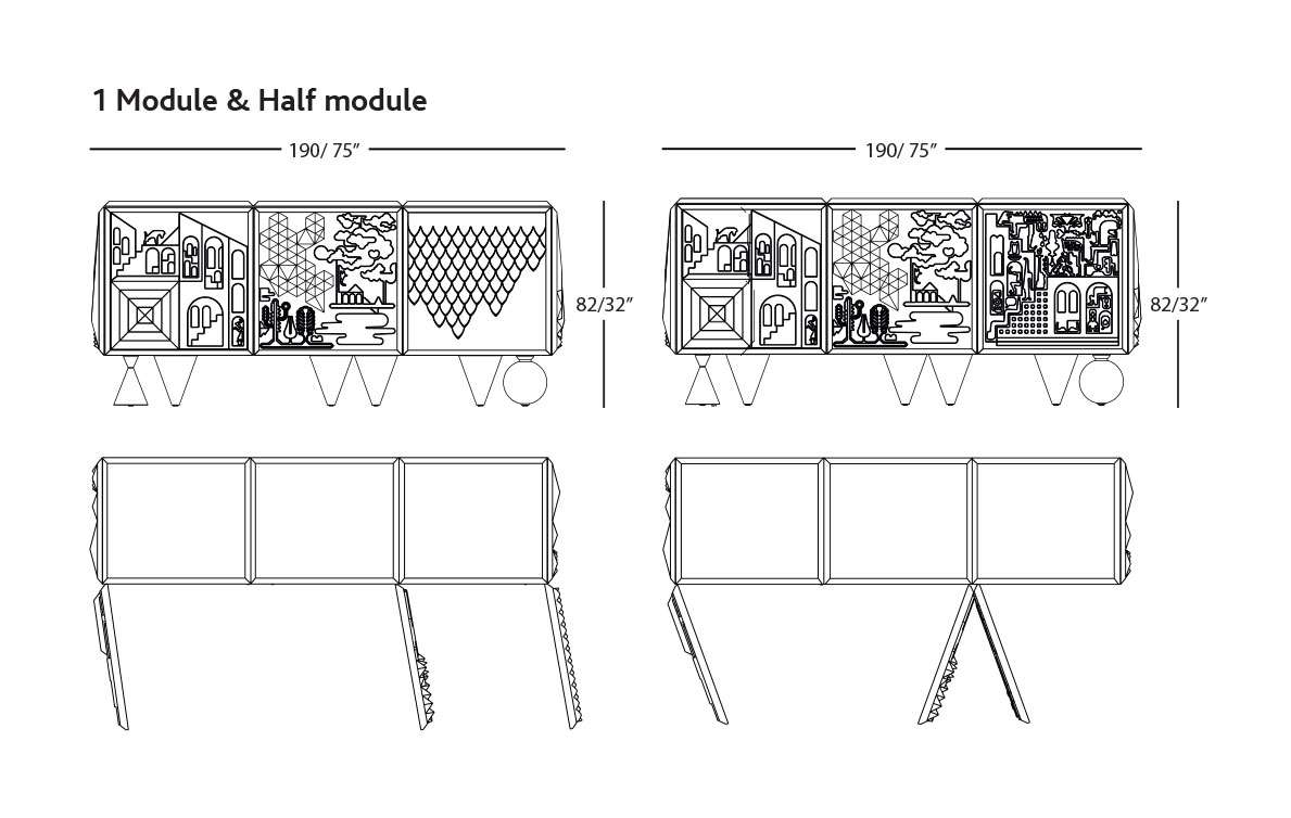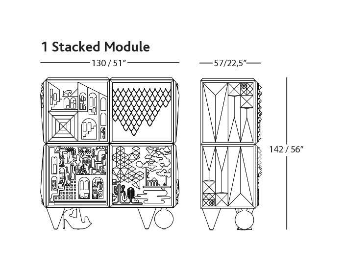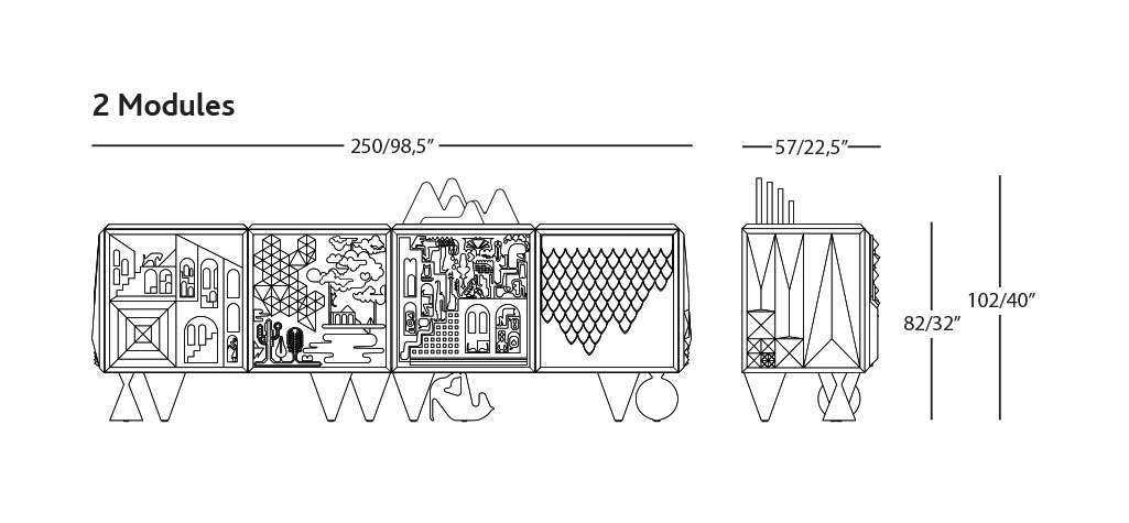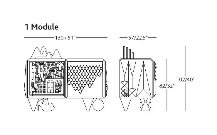 130/190/250 x 57 x h. 50cm / 51 x 22,5 x h. 20” (Height 82cm with legs and 102cm with the mountain top)