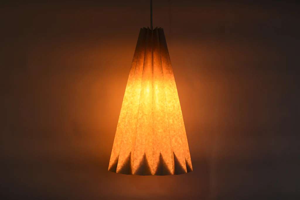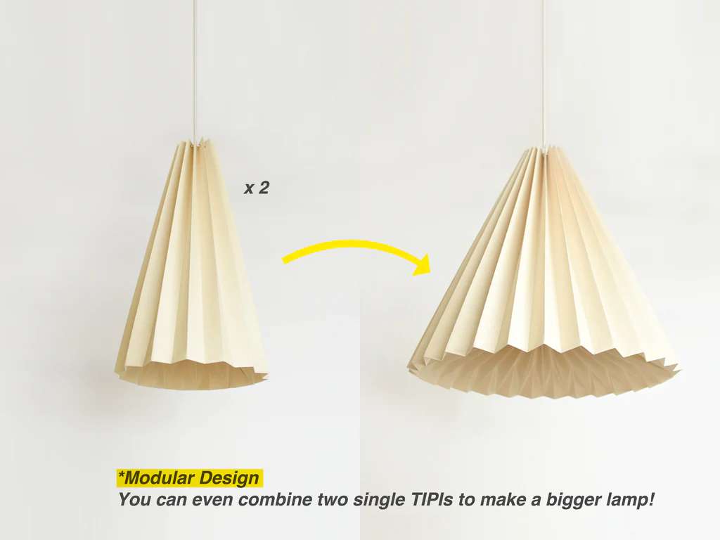 Design Inspired from "TIPI, a cone-shaped tent. They were made by Native Americans of the Great Plains who frequently moved from place to place.”Our origami lamps have been put together using the finest quality of paper. Each piece has been prepared with great care and exceptional craftsmanship to cater to your aesthetic needs for home decor.“All our products are handcrafted with utmost workmanship. The attention to detail and artistic brilliance that our Home-trained team of Differently-Abled people brings to the table makes our products special and unique.” Colour: Beige Package content: 1 Flat Packed Paper Origami Lamp Shade. (*Bulb and holder is not included) Modular design: Combine two lamps together to make a larger lampshade. Easy snap assembly. Quick & Easy Installation (All you need is a hanging light Bulb). Compatible with "LED" Light Bulb. A 12watt-3000k LED bulb is used for the setup in our listed images.