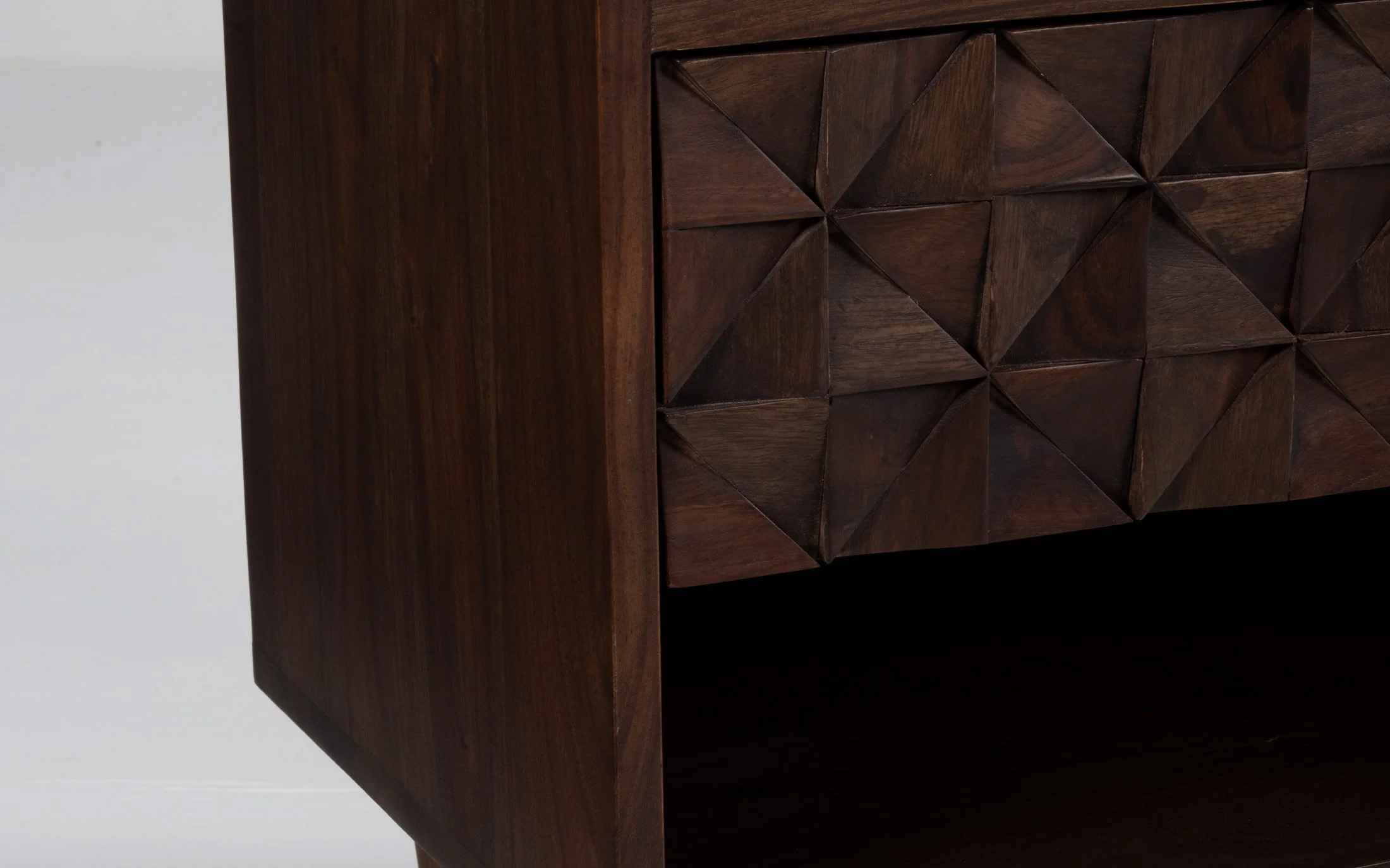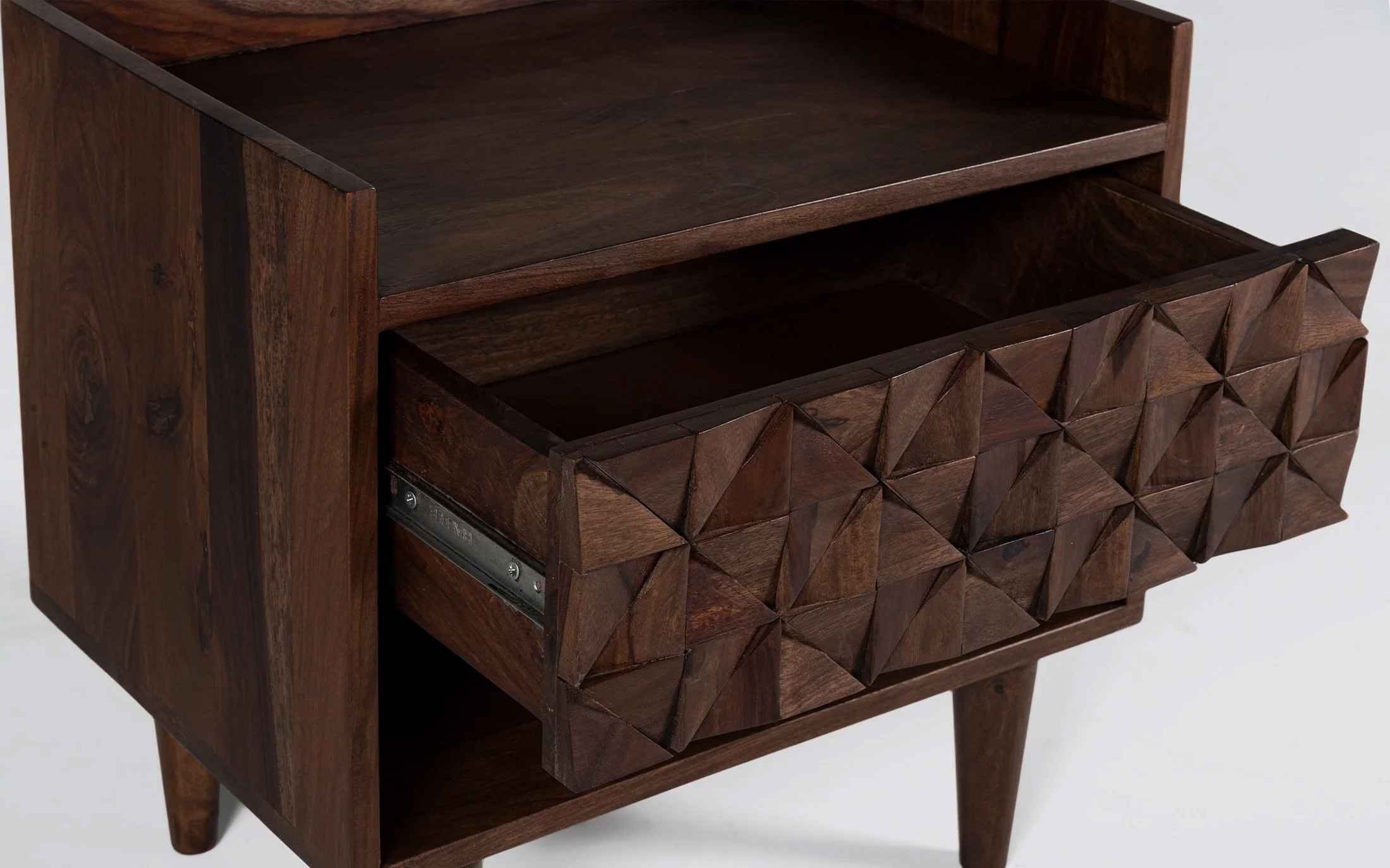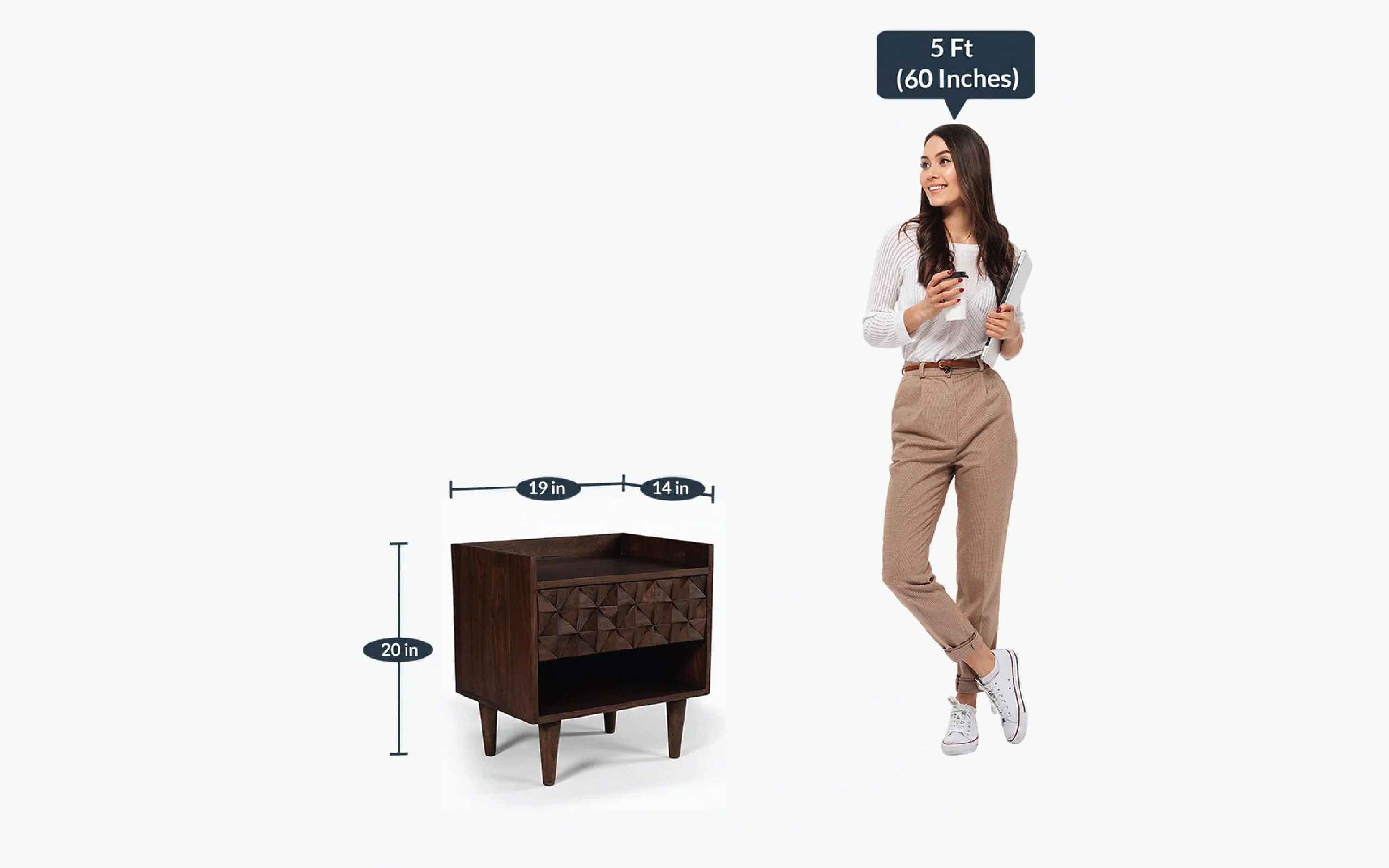Orangetree presents a perfect blend of art and precision in this timeless collection called Bicasso. Carved out of sheesham wood, the unique design takes up the mind with the rem- iniscence of the work of Picasso. The American walnut finish, which resembles the tint of the walnut tree presents the sheesham wood in its simple beauty. Yet again Orangetree opens up new horizons to the World of design by creating a minimal and artistic collection. The Bicasso bedside table is the perfect choice for your bedroom decor. It is made of Sheesham wood a perfect modern design and has a neat but slightly retro look. "Depending on your screen settings and resolution on your device there may be a slight variance in fabric color and wood polish of the image and actual product. Wood grains will vary from product to product in case of solid wood furniture."