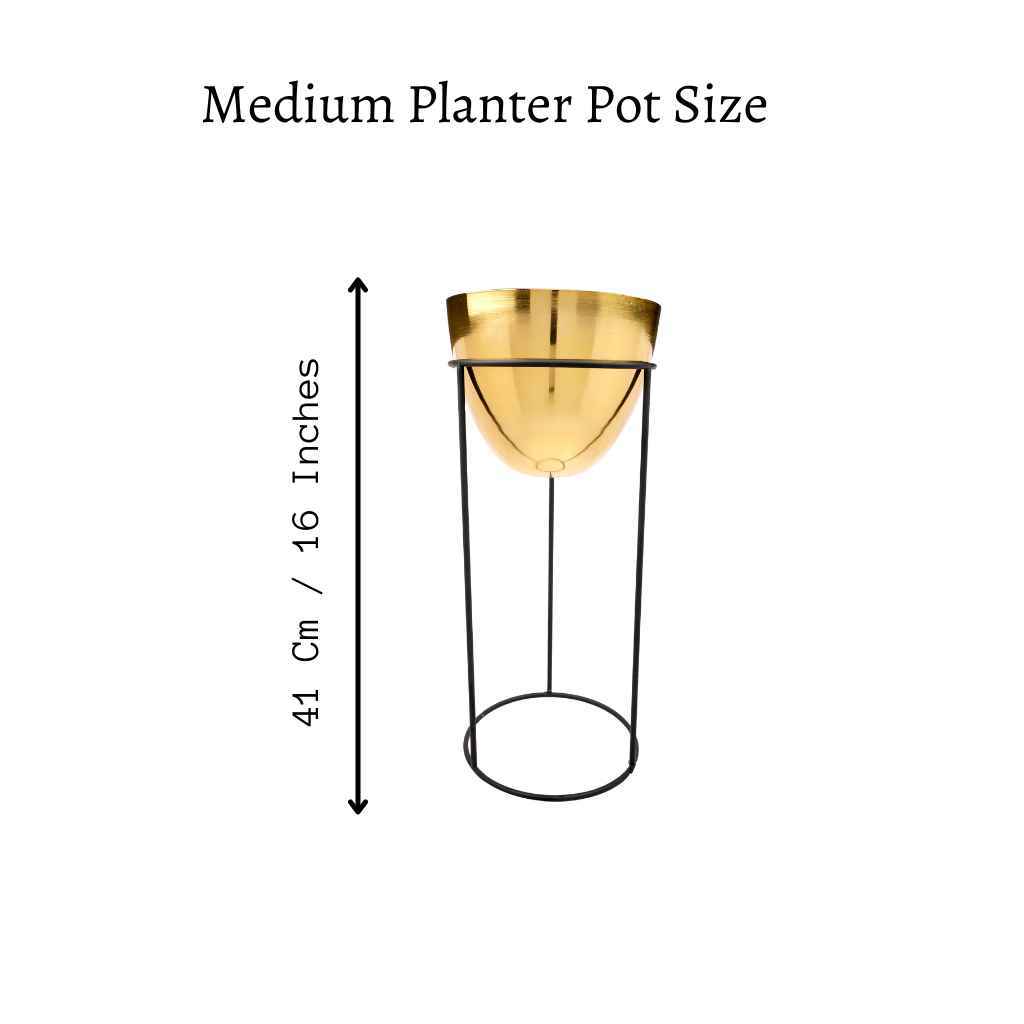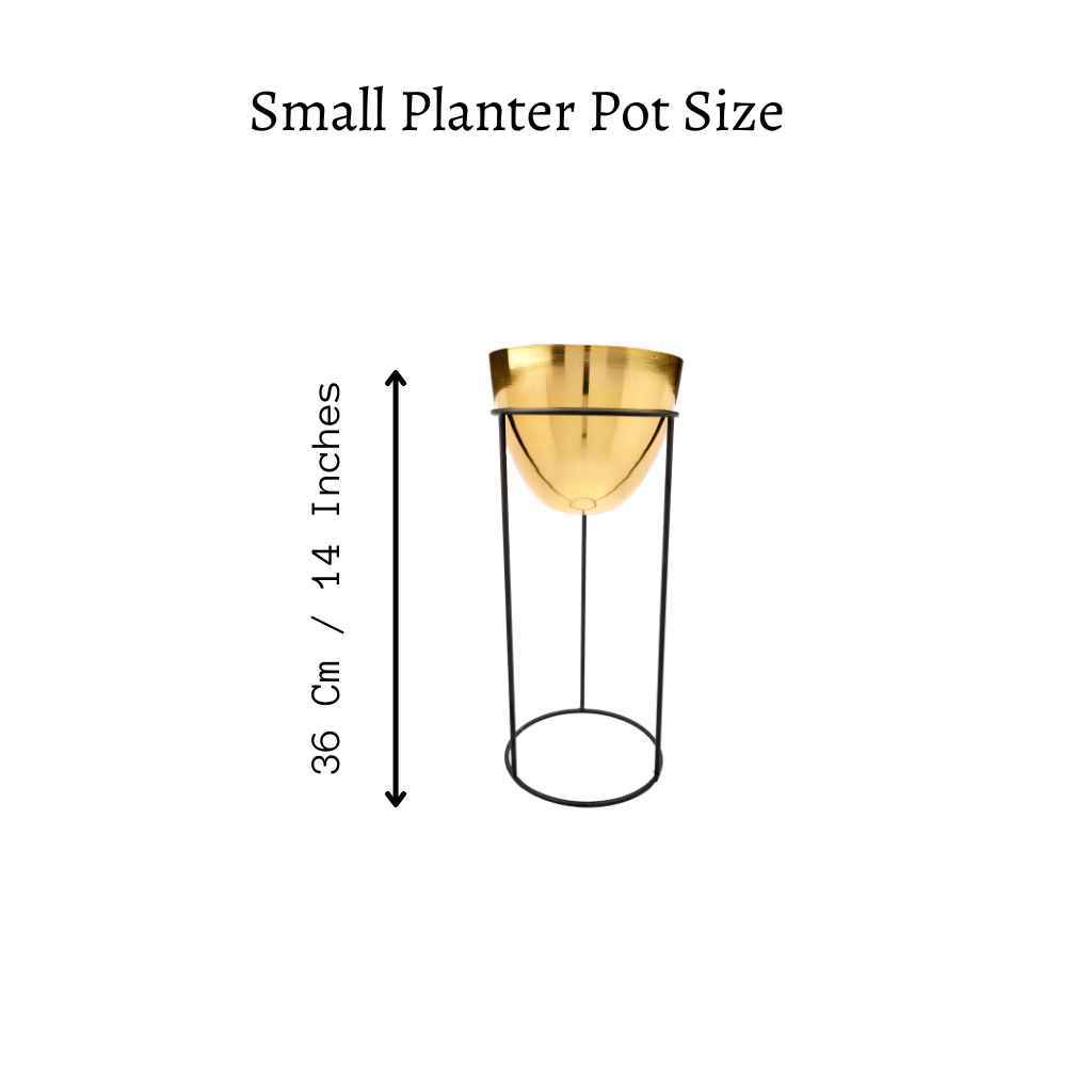 Material:Metal, Color of planter: Gold, Color of holder: Black (Plants not included) Item Dimension: Small Stand Length- 6 Inch Breadth- 6 Inch Height- 14 Inch. Medium Stand- Length- 6 Inch Breadth- 6 Inch Height- 16 Inch. Big Stand - Length- 6 Inch Breadth- 6 Inch Height- 18 Inch. Package Contents: 3 Pot 3 Stand (No Plants Included) Ideal to be used as a Indoor planters pot Can be used for indoor purposes like living rooms, balconies, offices etc. Also, refrain from using in outdoors or in garden Can also be used as table planter after removing from the holder The planter & the holder are handcrafted in Galvanized Iron to avoid rusting