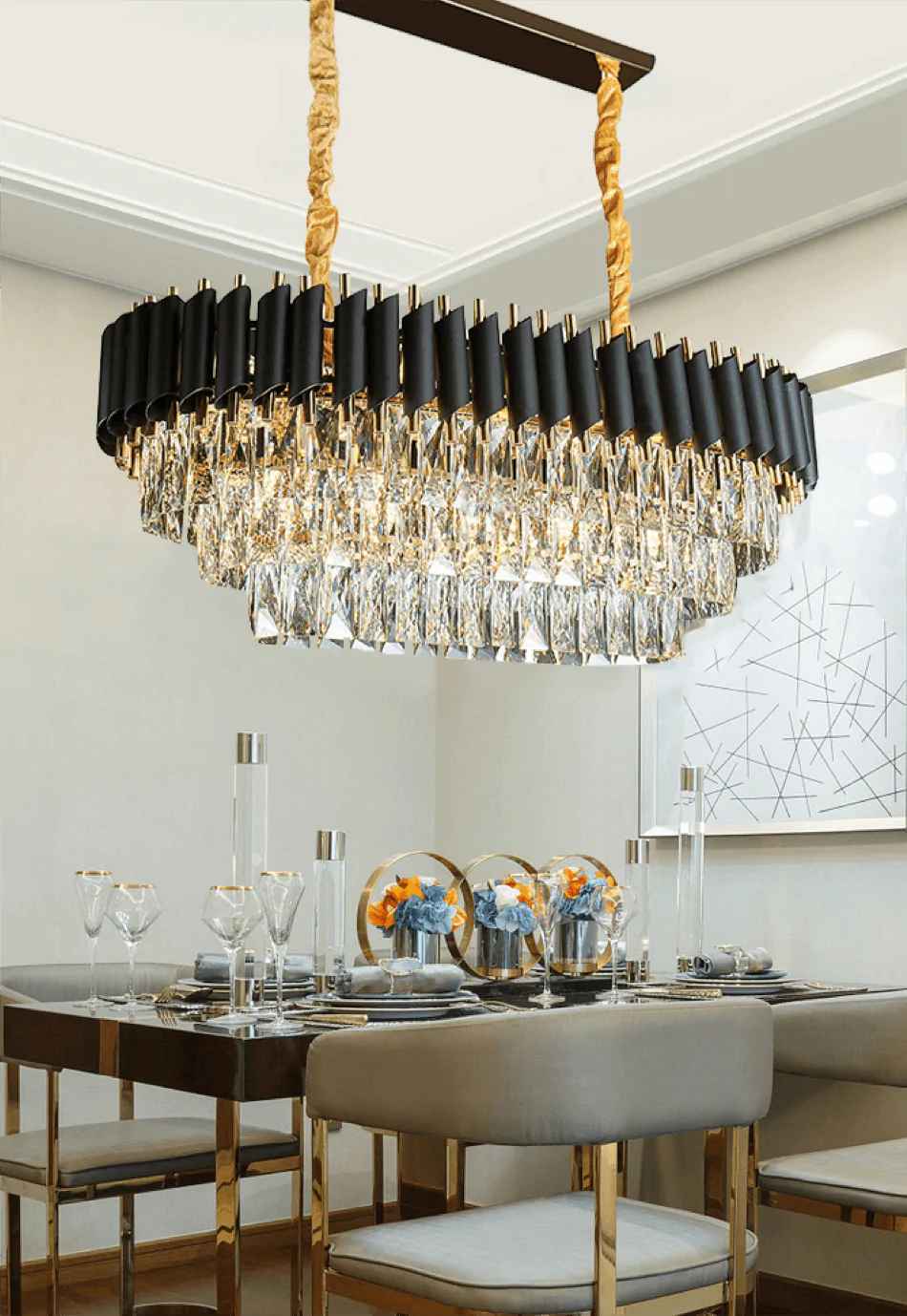 Black Mamba Oval Chandelier Normal Height Ceiling Chandelier Premium quality K9 crystal for easy maintenance and great ambience Italian crystal on the outer circumference LED Bulbs Not Included Easy Installation Perfect for living room, bedroom, hallway and more