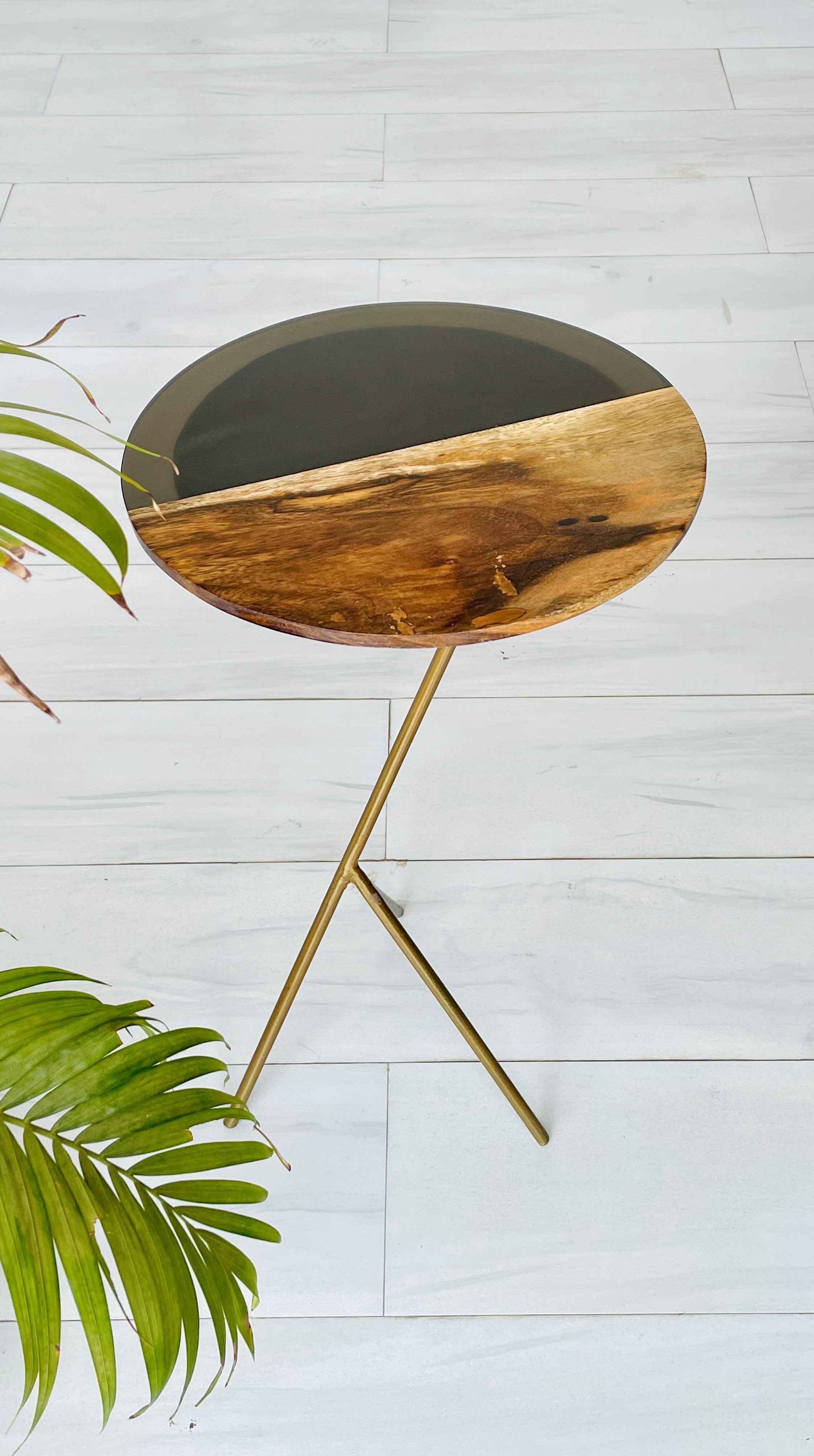 Inspired by the Colourful world of popular Korean TV, series, the squid games end table showcases a playful, handmade aesthetic, created by seasoned woodworkers in our in-house manufacturing facility using solid SheeSham wood and epoxy resin in turquoise blue this end table will radiate joyful energy in your interior with its bold expression.