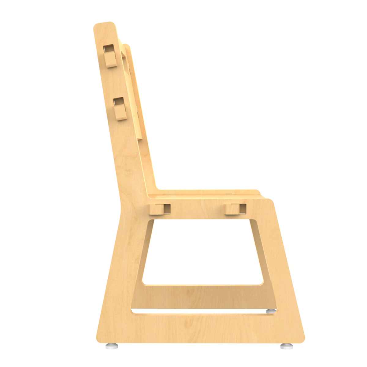 A perfect solution for practical and modish furniture for your home and classroom. The Blue apple chair is light weighted. No fuss, straightforward, sturdy and stiff. The assembly of the chair is so easy that even your kids will enjoy doing it. This chair is available in four different colours- Natural, White, Green, and Pink. You can get the chair personalised by crafting your kids name on it.No fiddling with dowel or screws, this Blue Apple chair securely clicks together and will be ready to go in seconds and can be taken apart again for space saving flat pack storage. Product Specifications: Material : Marine Grade, FSC certified Birch plywood Recommended Age : 3 -5 years Seat Height : 10" Colour : Natural Birch Wood Product Features: - Flat Pack - Non toxic, no VOC paint & polish - Interlocking joinery technique for easy to assemble & dismantle - Light Weight - Round corners for safety - Care: Easy to clean with a damp cloth. - Recycled Packaging