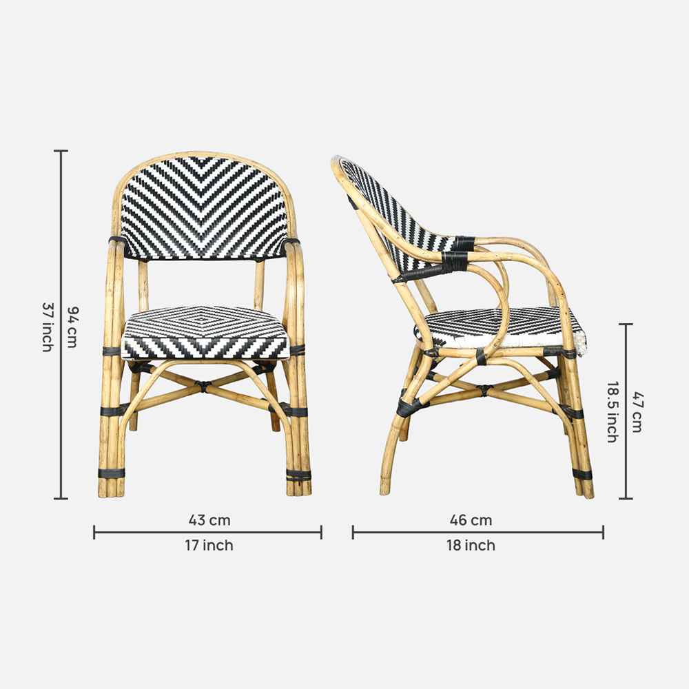 Introducing the Boho Sienna Rattan Chair – a fusion of elegance, style, and comfort. This exceptional piece from Manaiya's collection is meticulously handcrafted using natural cane, creating a statement piece that effortlessly combines aesthetics with functionality. The chair boasts a wicker seat intricately woven in classic black and white, adding a modern and stylish touch to your space. It's not just a chair, it's a work of art that elevates the ambiance of any room it graces. Versatile and adaptable, the Boho Sienna Rattan Chair seamlessly fits into various interior styles, making it a perfect addition to your dining area, living room, or bedroom. It's a versatile piece that adds character to any space. Elevate your surroundings with the Boho Sienna Rattan Chair – where artistry meets comfort. It's a reflection of your commitment to quality, style, and sustainable living, making it more than just a chair, it's an expression of your unique taste and values.