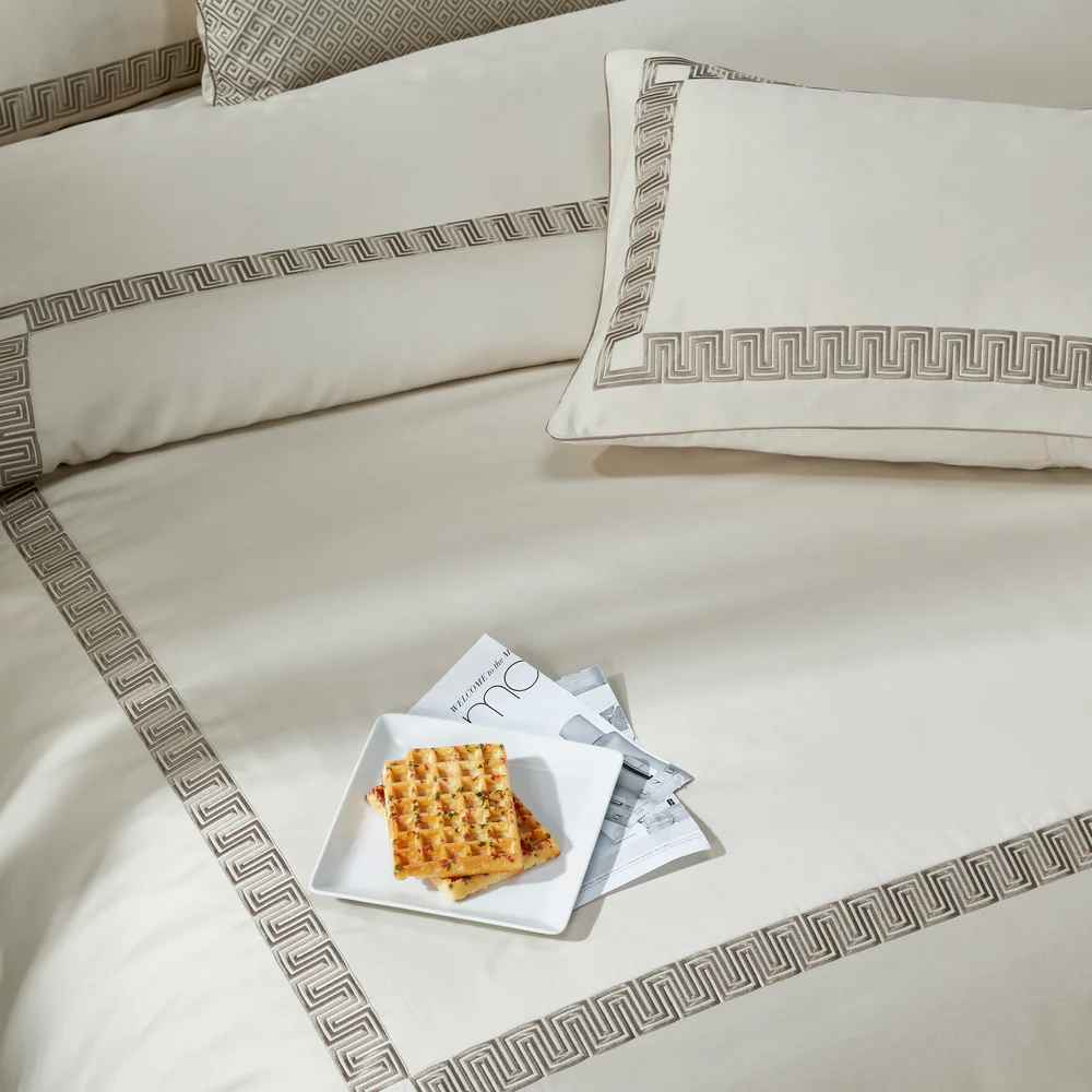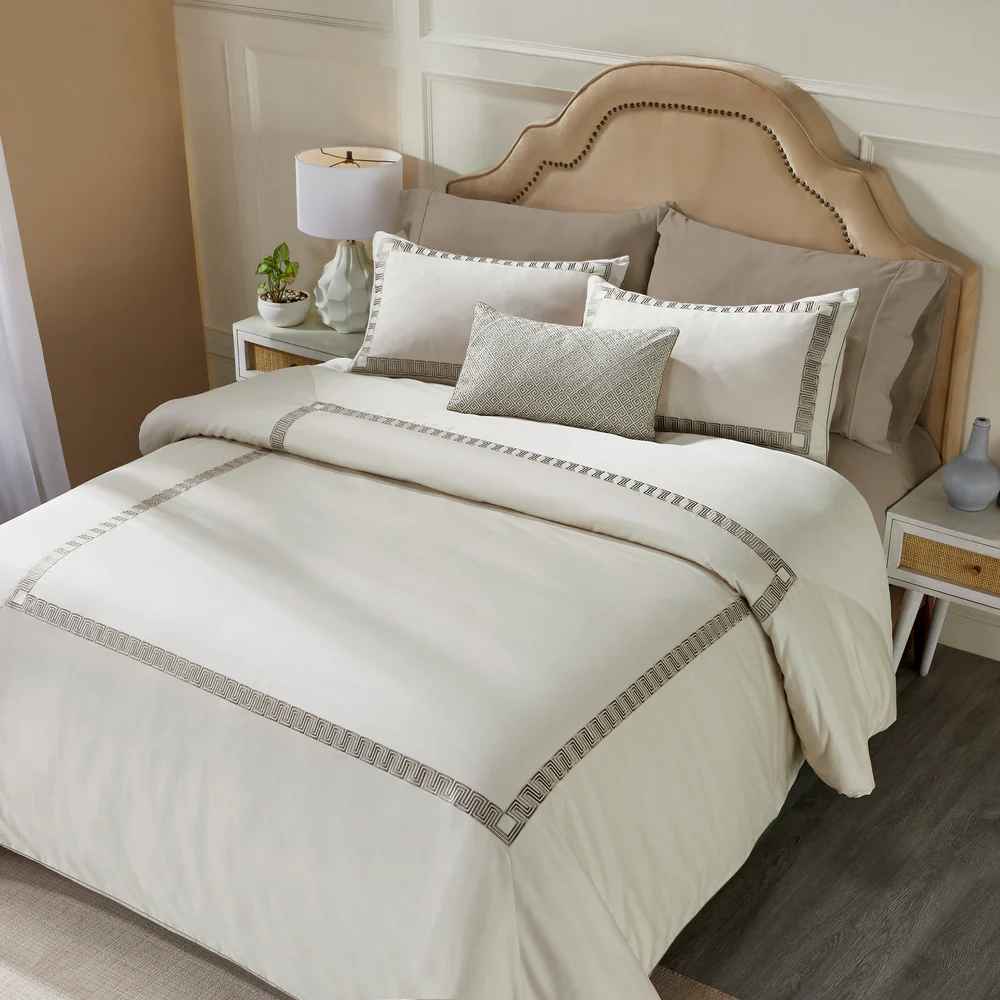 With a rather quirky yet eye-catching pattern, this Border embroidered bedding set is a true representation of class combined with aesthetics to give your space the love it deserves.
