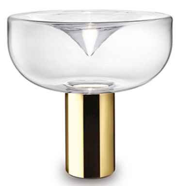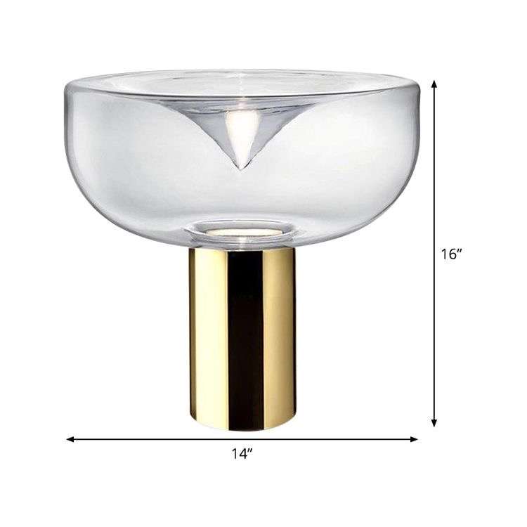 A sleek and enticing modern piece.Accenting the décor beautifully as it rests upon the smaller surfaces of your lovely home, this piece starts with a cylindrical base made of lacquered metal. A bowl-shaped, handblown glass shade rests atop and contains a downward-facing spire that holds an integrated LED. The light emits in a focused and even manner, decorating the room around it with a bright layer of light.