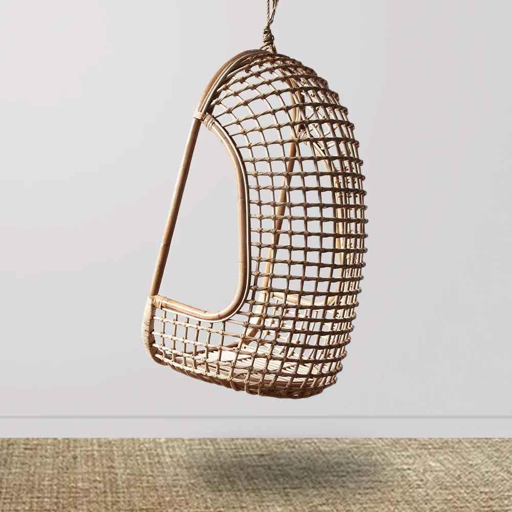 The Natural Swing Chair is a must-have addition to your space that you never knew you needed! It is meticulously handcrafted from sustainable rattan, featuring stunning curves and soft edges that evoke serenity and calmness. You can hang this chair indoors or outdoors in a fully sheltered space, although it is not recommended to leave it outside in harsh weather conditions. Please be aware that the rattan frame is the only component of this Swing Chair included, and you will need to provide your own rope or chain of the appropriate length to hang it at your desired height. Displayed in Natural.
