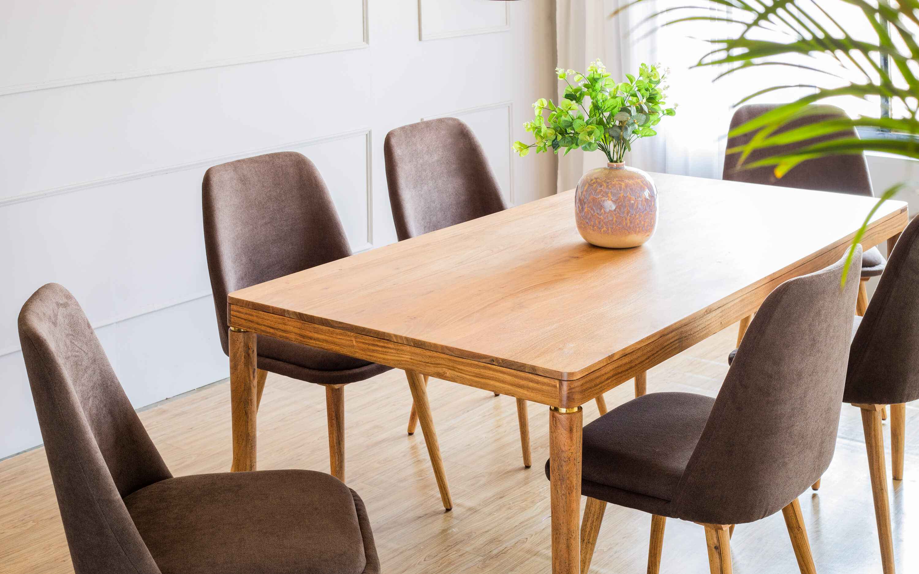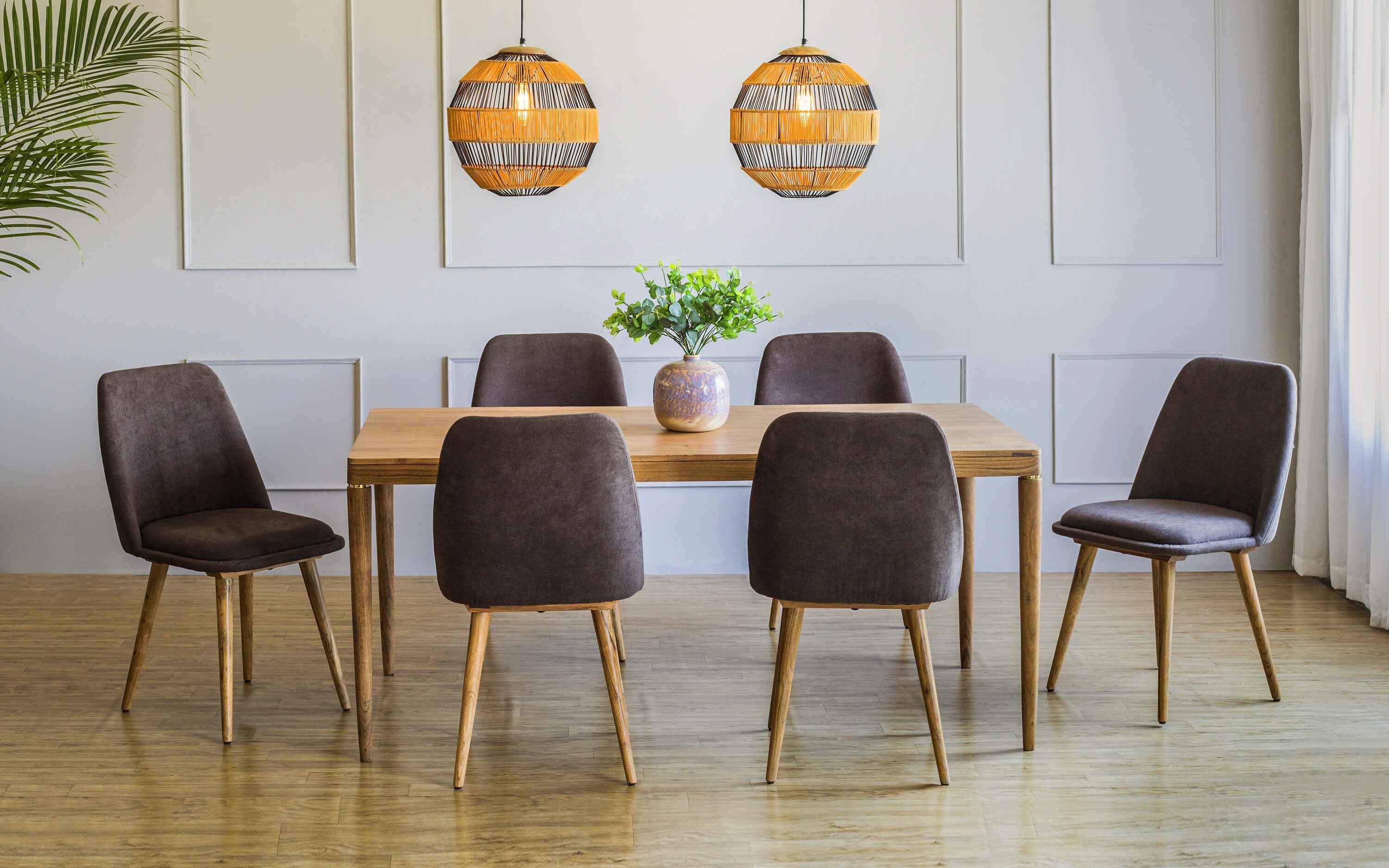 Our 1960s-inspired Buta dining table recalls the timelessness of mid-century design with a tailored profile and streamlined shape. The table epitomizes the clean lines of modern design with a streamlined top. Integrated with the table's slim apron, conical legs taper down to get the perfect look. "Depending on your screen settings and resolution on your device there may be a slight variance in fabric color and wood polish of the image and actual product. Wood grains will vary from product to product in case of solid wood furniture."