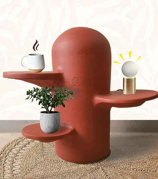 This clay table is not only robust, stable and durable but it will also add an aesthetic value to your indoor/outdoor living space. Clay products are weather and fire resistant and have ‘easy-to-clean’ properties. Their low maintenance demands make it a perfect selection for outdoors A Cactus adapts itself perfectly to almost any environment. Clay, on the other hand, has soothing earthy tones and cooling properties which provide a sense of humility to any surrounding. This indoor/outdoor side table is an example of what happens when these two adaptable and versatile ideas unite. This clay side table is a tribute to the adaptive nature of a Cactus, and its thirst to survive for decades. The plant makes apt use of any and all resources, which the Earth has to offer irrespective of the environment it flourishes in.