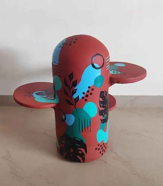 Earthy colours and a rough texture provide a sense of warmth and humility not just indoors but outdoors as well. This side table is designed to blend into your spaces and thrive just like the mighty Cactus Crafted with love and earnestly hand painted, bringing to you a mindful merger of art and design. It is rightly said that “Colour changes perspective”, we customise this table as per your colours and patterns to get you your own 'one of a kind' piece.
