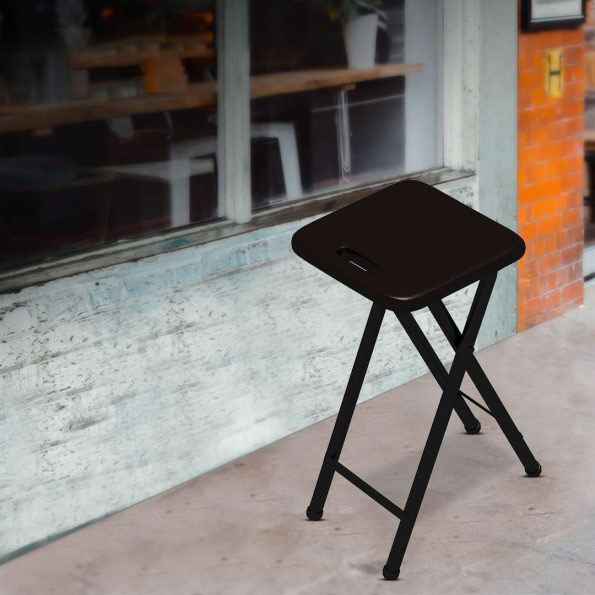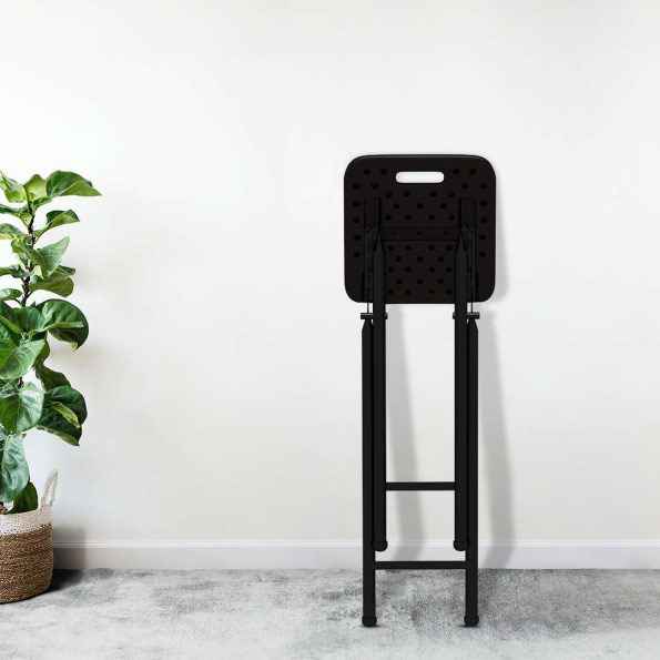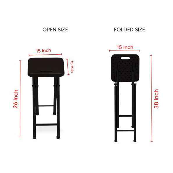 Foldable & Portable heavy-duty cafes Stool (100 kgs static load-bearing capacity) • The top of Cafe 2 is 15X15 inches in square and is double layered and made from high-density polymer, it also has a Recess to hold the Table after folding • Can be used with Wonderplast Teeny • The Foots are made from engineering polymers (Delrin) for long life & durability • The body is made from high-quality steel tube duly powder coated in BLACK colour. • This product can be used as Kitchen Table, As balcony, Personal meeting for two-person, school canteen, Cafeteria, Shops cafe coffee days, Garden Area, Snack table • Colors available- White, Green, Red, Yellow, Brown