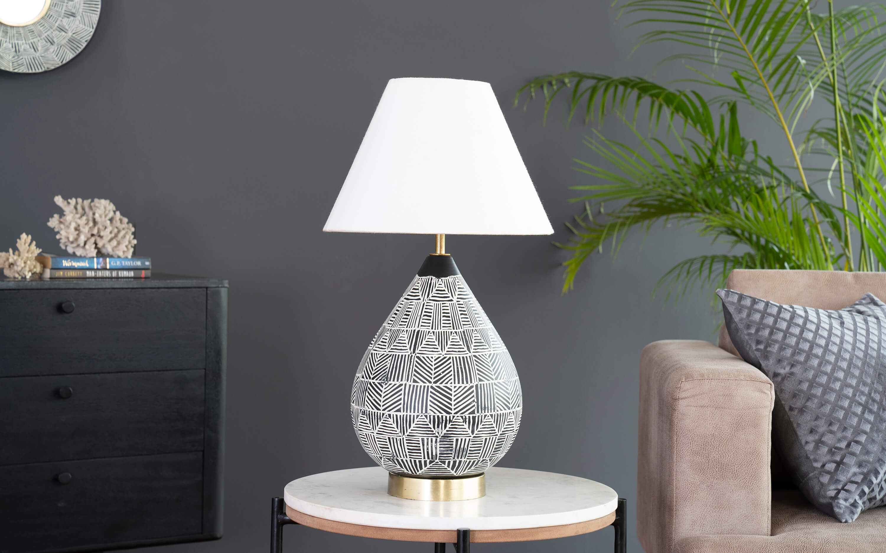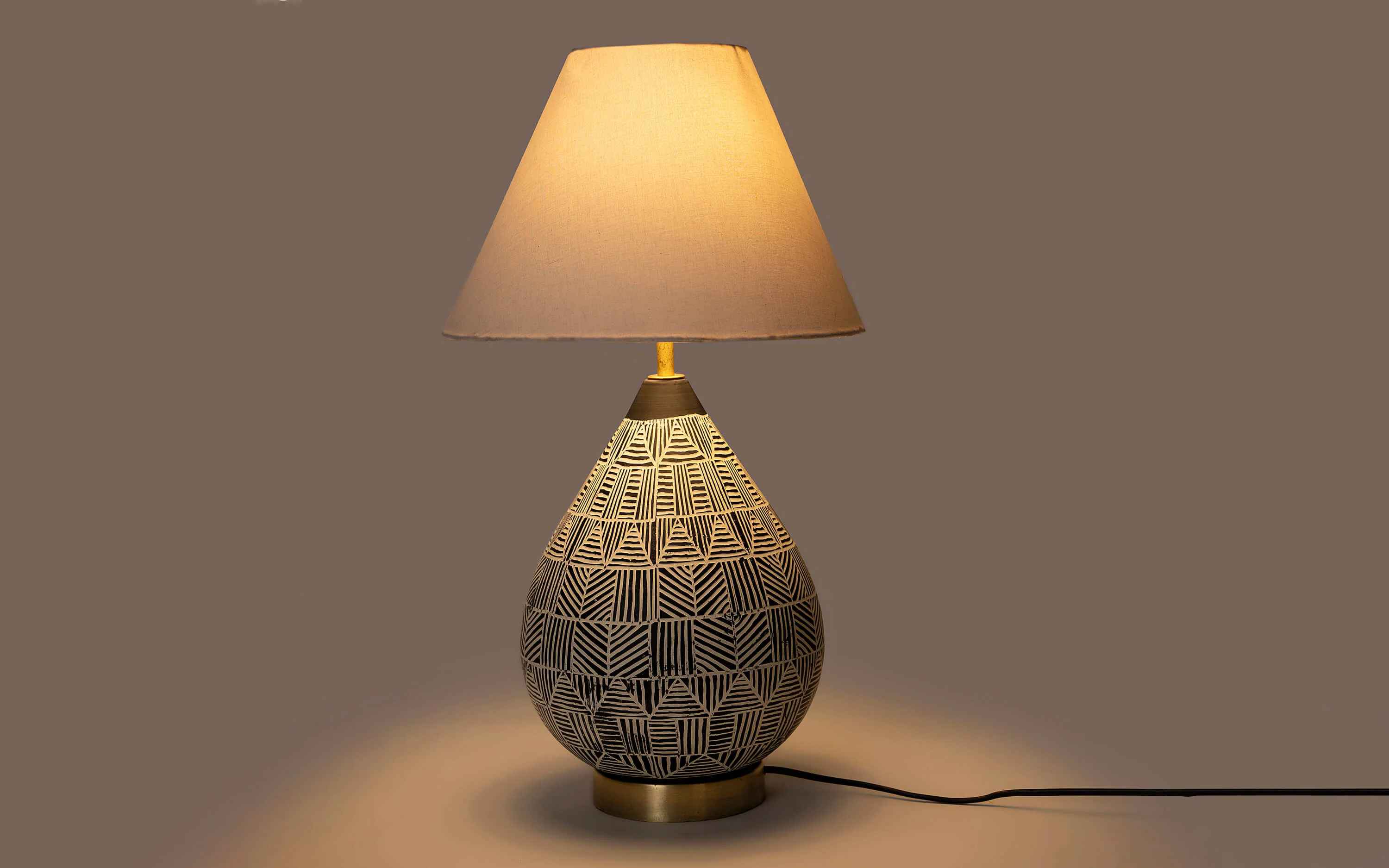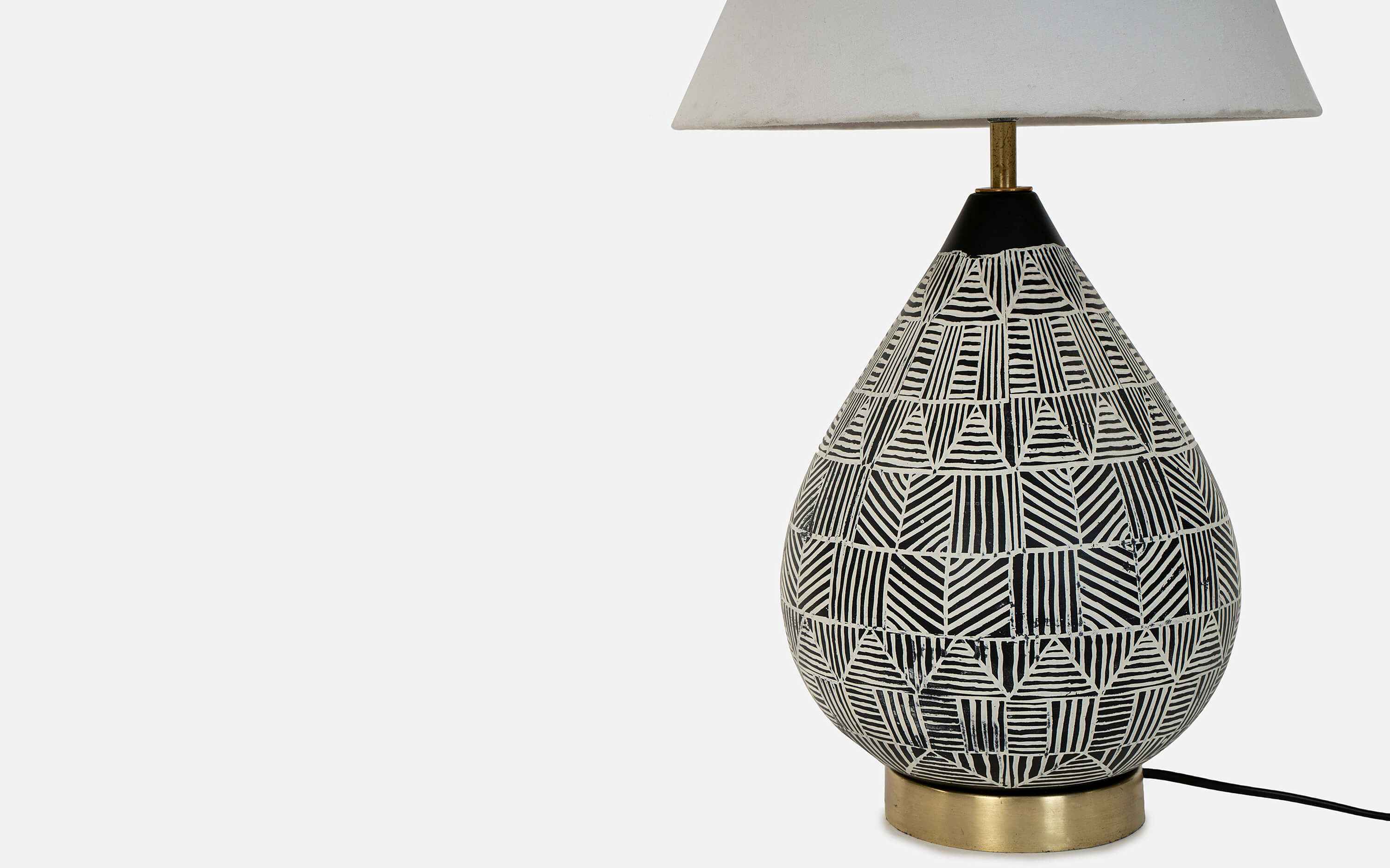 Calathus is a modern Lighting collection designed on a black base with white patina on contemporary abstract embossed lines. Geometric accents and abstract artwork combine to get a striking effect. This lighting range is still sharp, clean, and unquestionably sophisticated. We can elevate any simplistic or minimalistic design to the highest heights and bring any boring room to life through this collection. "Depending on your screen settings and resolution on your device there may be a slight variance in fabric color and wood polish of the image and actual product. Wood grains will vary from product to product in case of solid wood furniture."