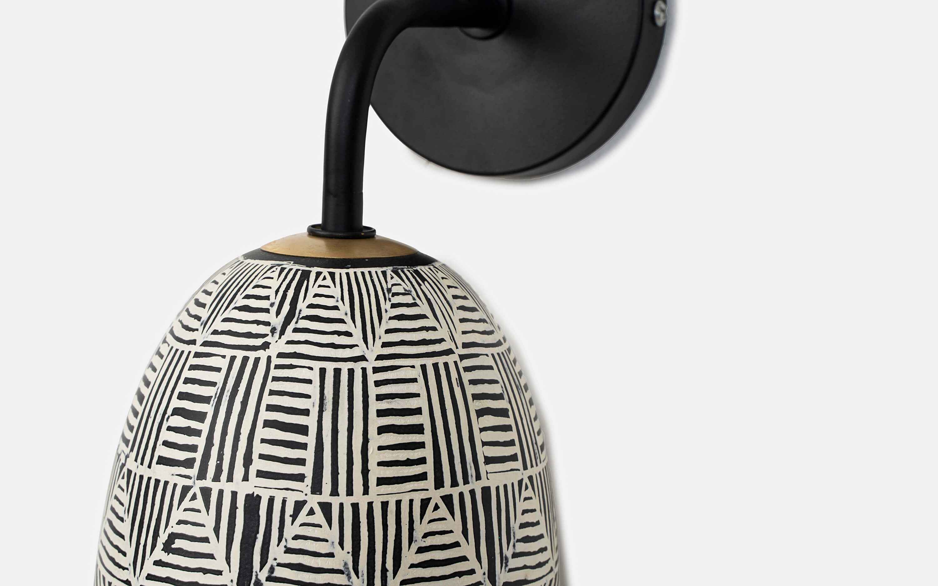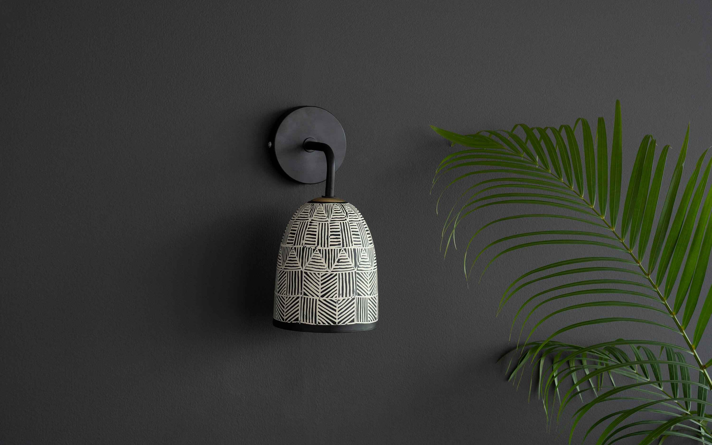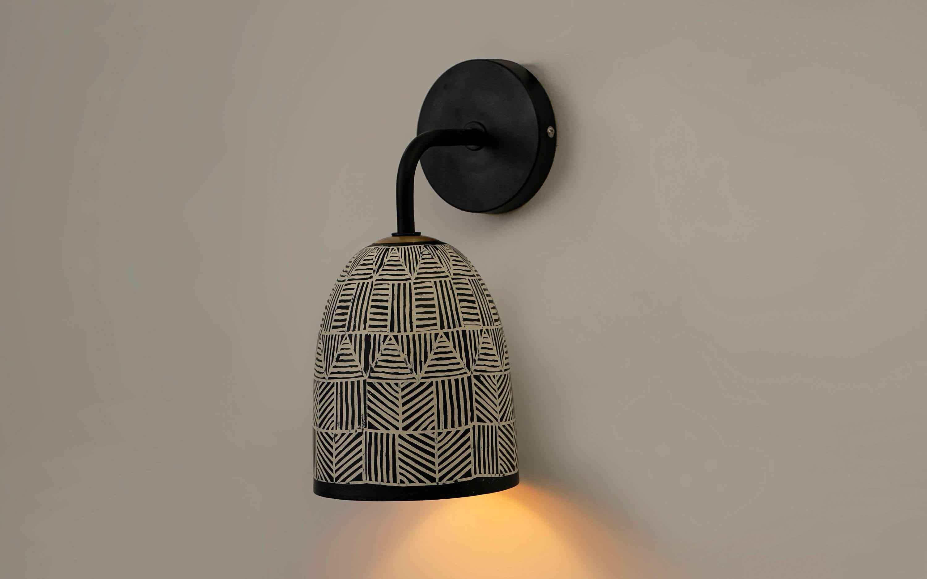 Calathus is a modern Lighting collection designed on a black base with white patina on contemporary abstract embossed lines. Geometric accents and abstract artwork combine to get a striking effect. This lighting range is still sharp, clean, and unquestionably sophisticated. We can elevate any simplistic or minimalistic design to the highest heights and bring any boring room to life through this collection. "Depending on your screen settings and resolution on your device there may be a slight variance in fabric color and wood polish of the image and actual product. Wood grains will vary from product to product in case of solid wood furniture."