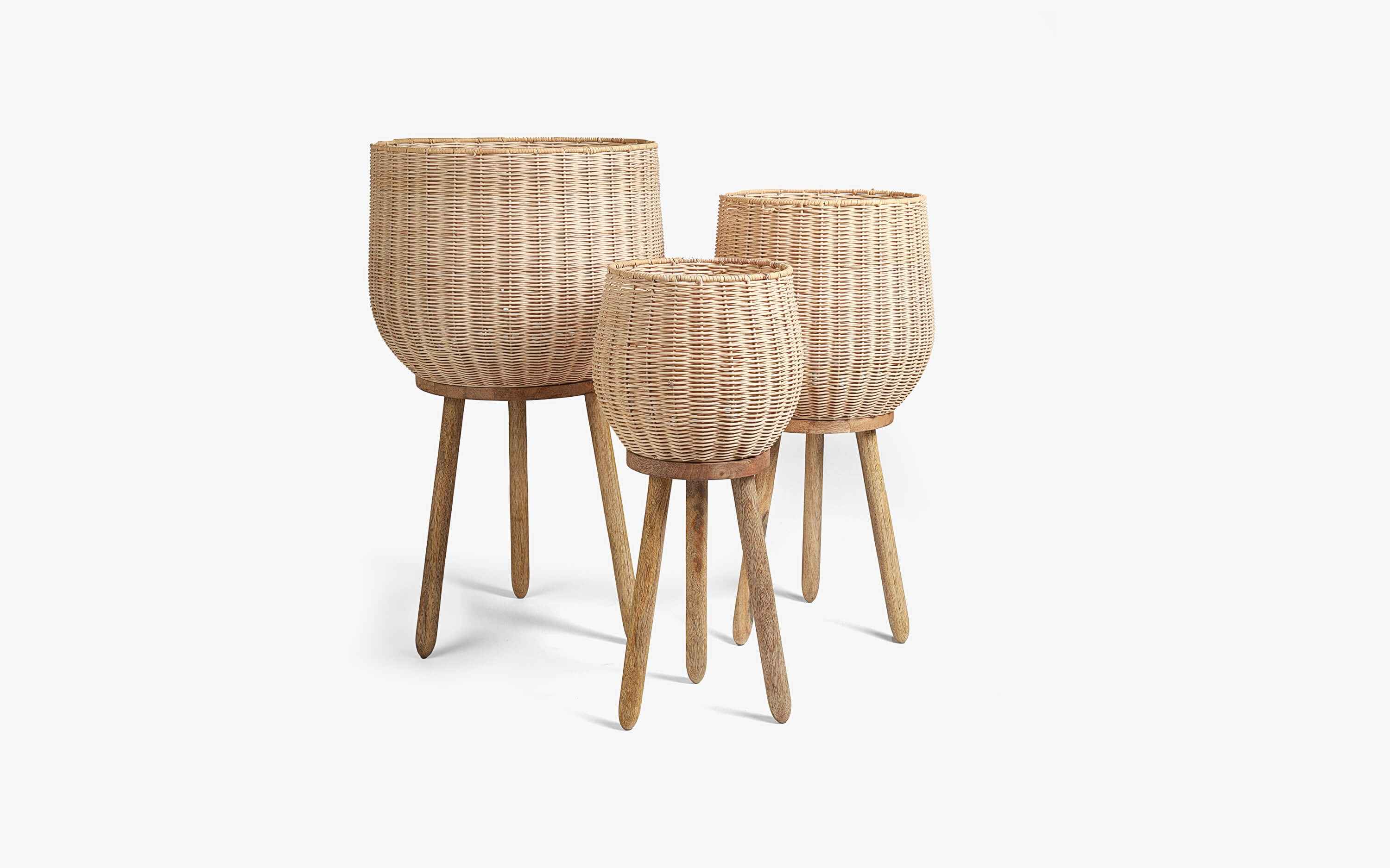 The best way to show off your greenery? Crafted from natural cane and natural mango wood, this set of 3 planters come in different heights, which will add depth to your space.