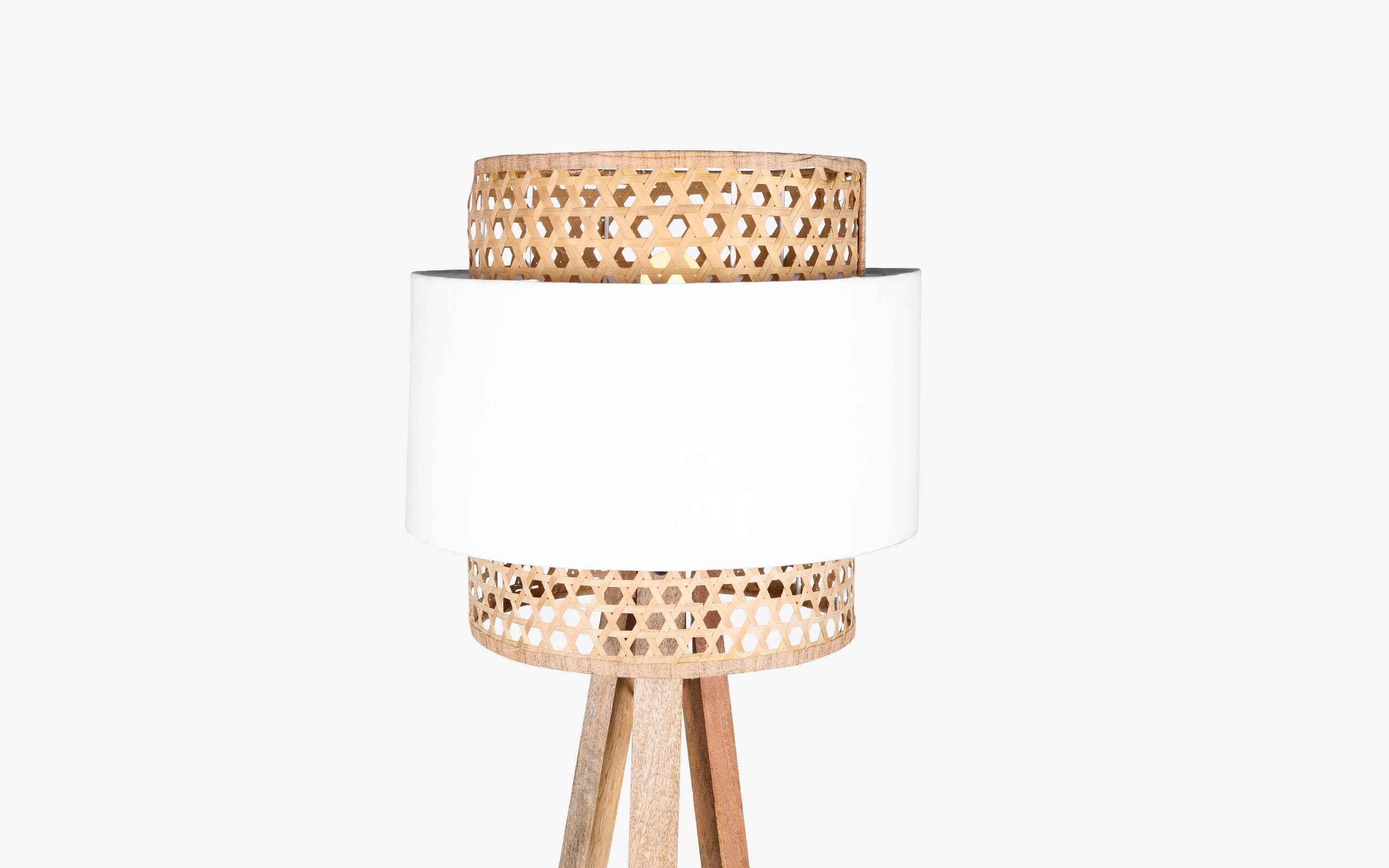 Handmade by skilled artisans, our Canna Range in bamboo is exquisitely woven in cylindrical shape with banded off white cotton fabric adding contrast and contemporary feel blending well with a different interior spaces. Due to its eco- friendly and handcrafted nature, each piece is unique and sustainable. "Depending on your screen settings and resolution on your device there may be a slight variance in fabric color and wood polish of the image and actual product. Wood grains will vary from product to product in case of solid wood furniture."