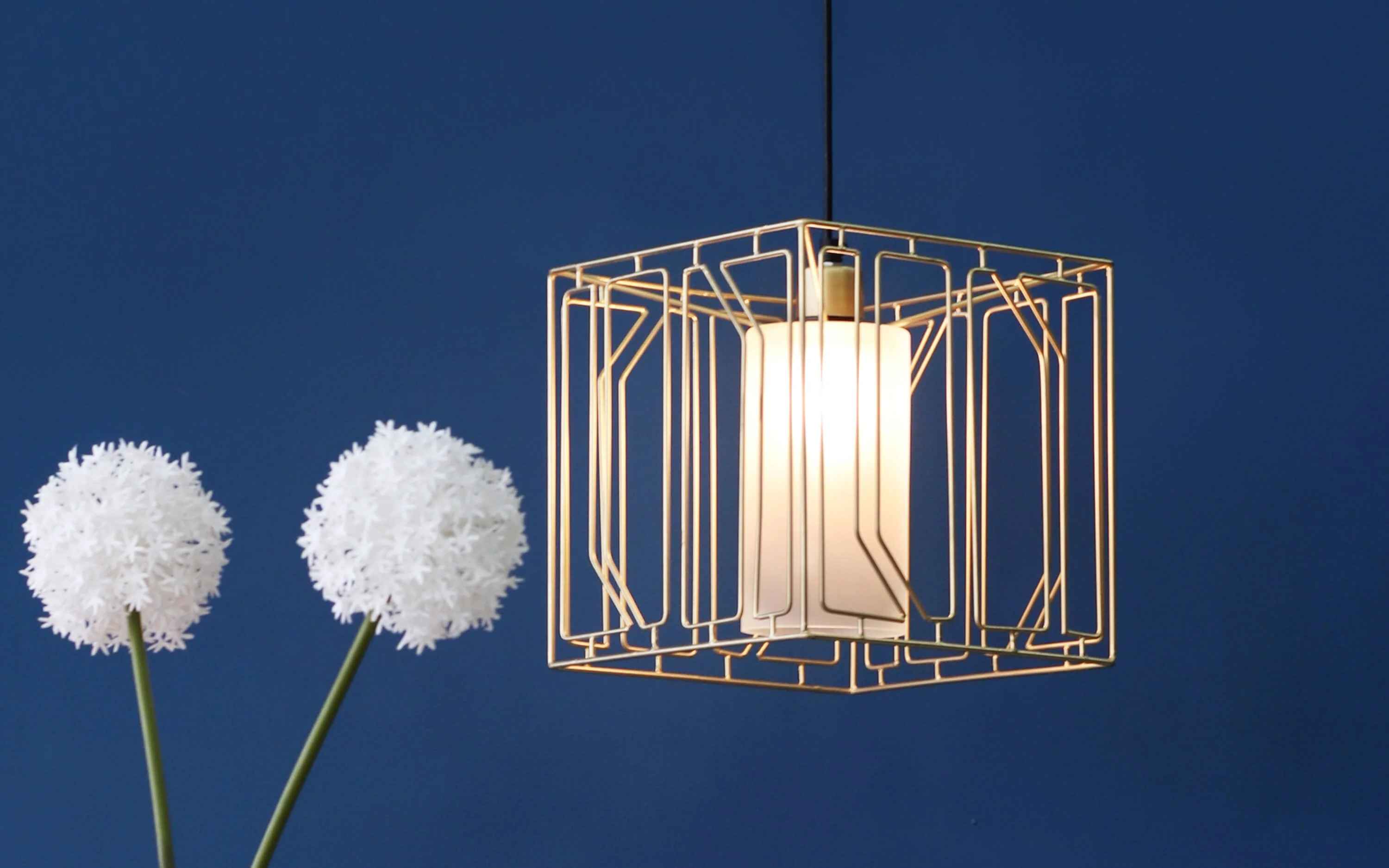 Chokusen in Japanese means 'a straight line'. A line helps define the peaceful simplicity surrounding the modest designs of Japanese culture. Japanese style evolves around clean and uncluttered living, holding tightly to balance and order. This collection is an exploration and extension of the same idealogy. Pair it with the matching table lamp for a coordinated look. The Choku Hanging Lamp is a beautiful, contemporary pendant light that will add style and sophistication to any room. It's made of iron with a gold finish and features frosted glass panels. The Choku is easy to install and hangs from the ceiling by a metal chain. It would be perfect for hallways, living rooms, bedrooms, dining tables, kitchens, balconies and outdoor areas. "Depending on your screen settings and resolution on your device there may be a slight variance in fabric color and wood polish of the image and actual product. Wood grains will vary from product to product in case of solid wood furniture."