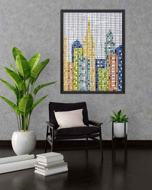 ‘Sky is the limit’ or ‘Sky is where your limit begins’, proves this CITYSCAPE, thoughtfully canvased to capture the beauty of architecture and city life. This piece perfectly adds a delightful touch to your space and expressively inspires to keep crossing every limit that comes your way until you touch the sky of your goals every day. Drawn from the hustle and bustle of city life, this Mosaic Painting Cityscape is an escape in the imagination of sky and all things above!