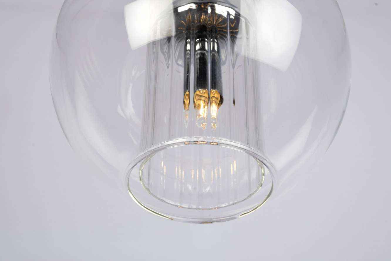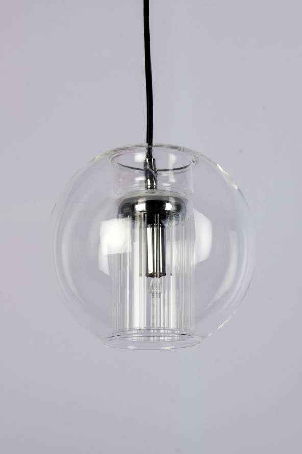 A chrome nickel finish boasts modern elegance on the frame of this steel mini pendant. Its clear glass shade shows antique personality with eye-catching ribbing. It illuminates your favorite decor through it's bold presence. Available in two sizes.