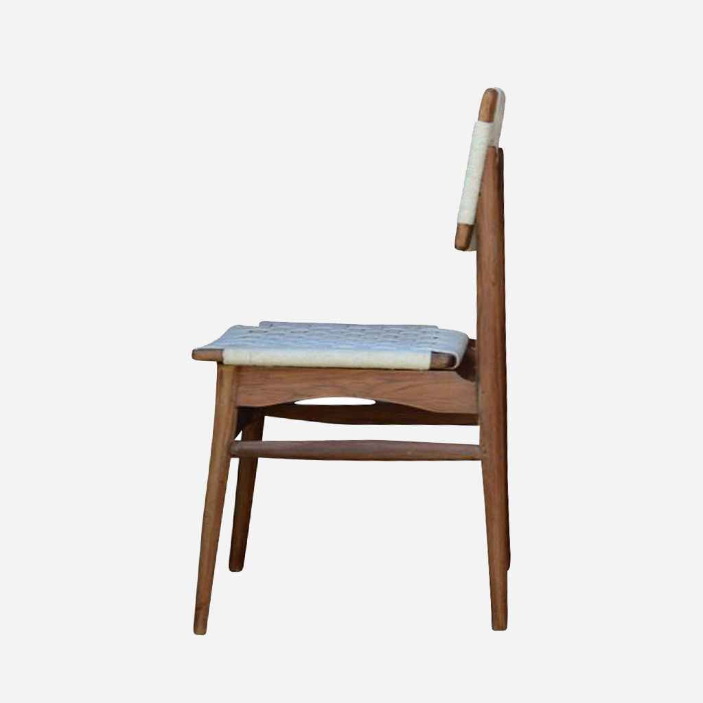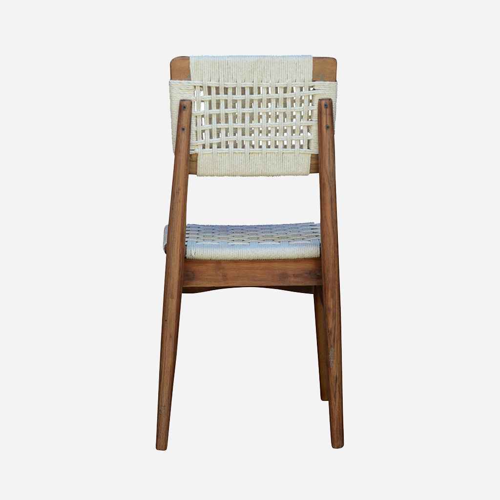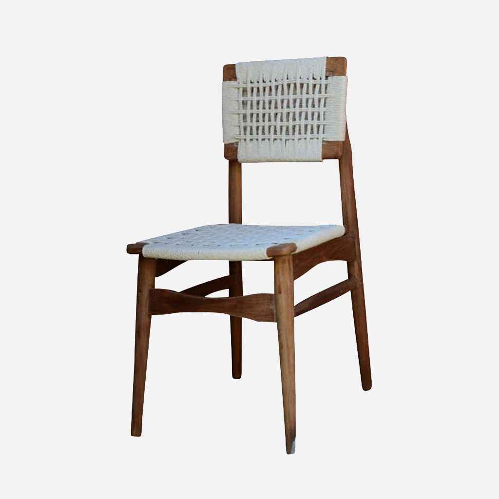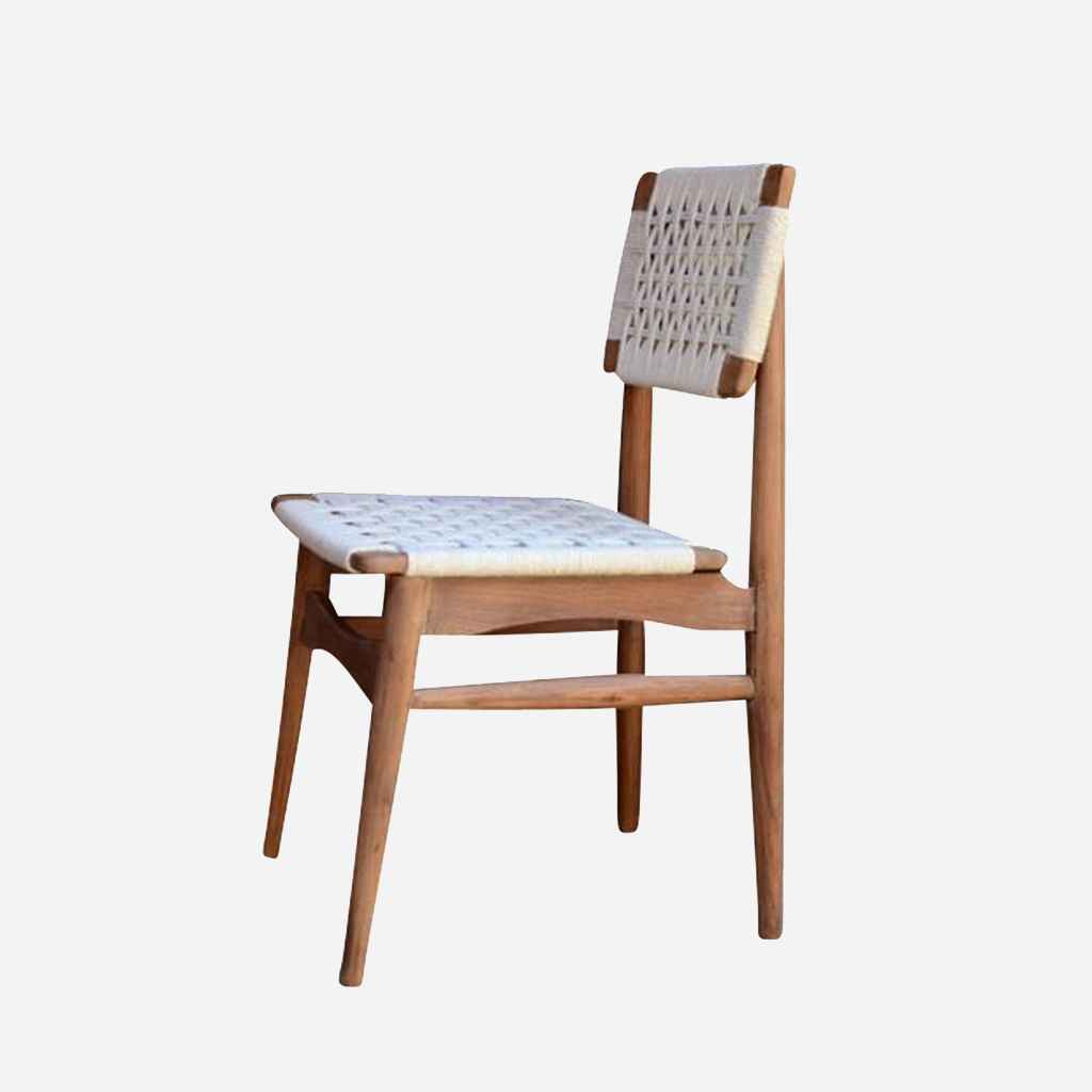 Circle your dining table with our Clover weave chair for a mid-century touch. A slightly slanted backward solid wood backrest with rope weave supports your body comfortably. Clean lines and tapered rounded wooden legs with tie members grant stability to the foundation of this chair. A woven rope seat adds texture, contrast, and support under your body for comfortable seating. The rope colour can be customised to black. The chair has a beautiful raw look without polish. The chair can be polished with water-based PU for a more finished look.
