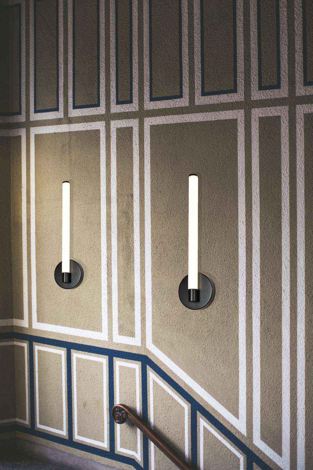 Featuring a smooth cylindrical white glass tube for a discerning touch,it features a round framing and classic squared backplate. Finished in an on-trend black hue, it's a definitive look for contemporary and classic looks alike. This is a great look for any hallway, bath or bed space. Available in black and white.