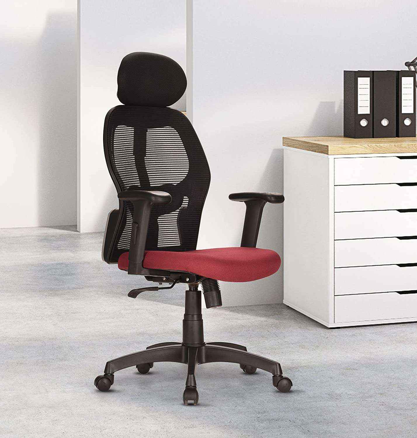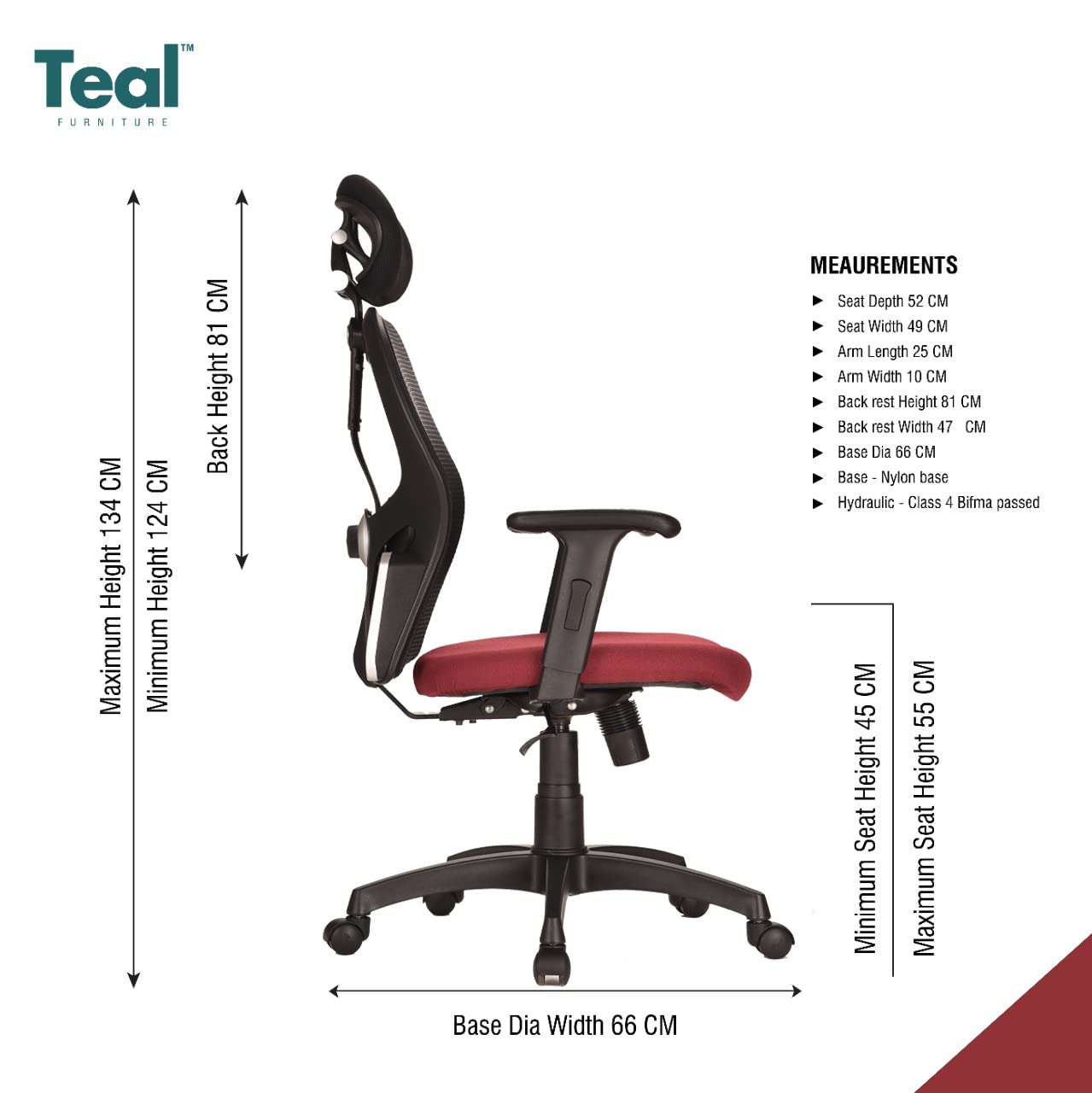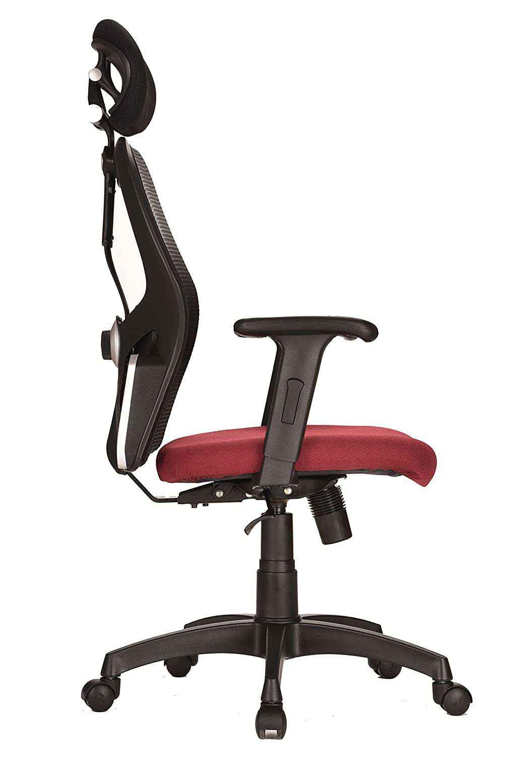 Comfortable Chair with Ergonomic Lumbar Support. Internal Frame Material: Glass Filled Nylon Structure with Breathable Mesh | Color: Black | Seat : Molded with 45 density | Size: Medium Back | Swivel: 360º swivel Arms: Comfortable elegant arms design | Mechanism : Heavy Duty Single Lock Synchro Tilt Mechanism | Gas-lift : Class 4 (Pneumatic height adjustment, BIFMA Certified) | Base: Glass Filled Nylon Base | Castors: 50mm Nylon wheels Black. Maximum Weight Load Capacity :120 kgs. Easy to Assemble. Assembly Required: Chair requires basic self assembly