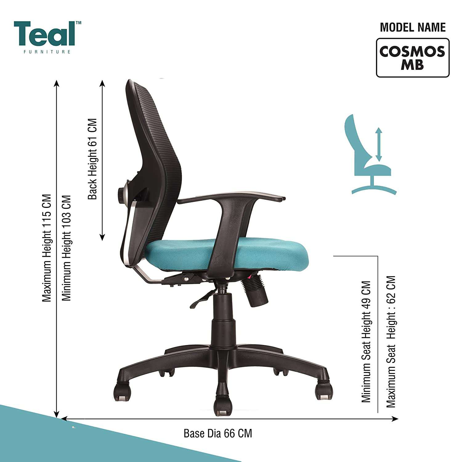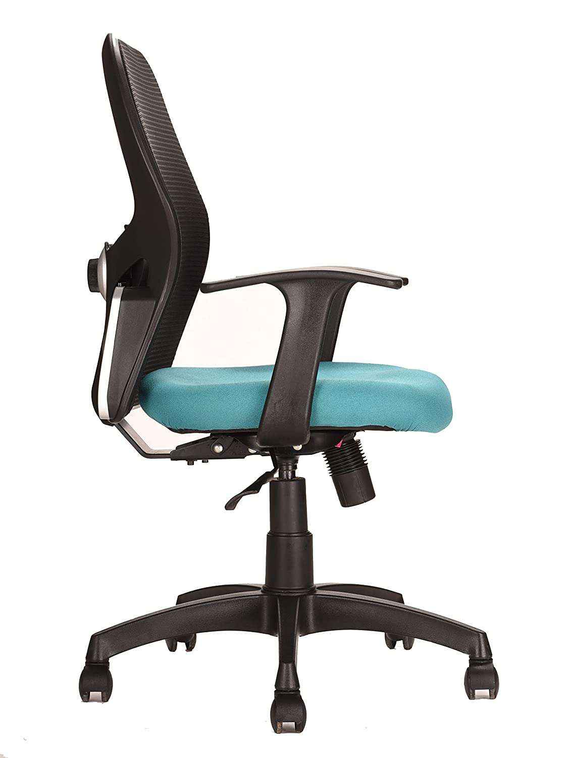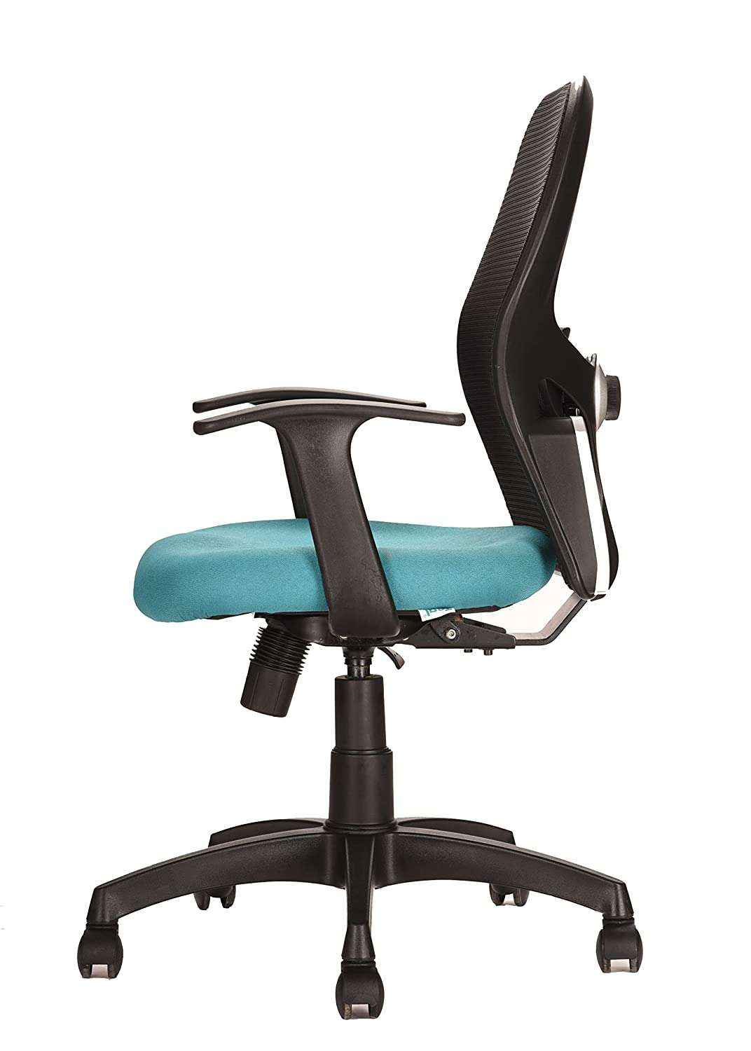 Comfortable Chair with Ergonomic Lumbar Support. Ideal for people having height below 5ft 8 inches. Internal Frame Material: Glass Filled Nylon Structure with Breathable mesh | Color: Black | Seat : Molded with 45 density | Size: Mid Back Arms: Nylon Arms | Mechanism : Heavy Duty Center tilt Mechanism | Gas-lift : Class 4 (Pneumatic seat height adjustment, BIFMA Certified) | Base: Glass Filled Nylon Base | Castors: 60mm Nylon Wheels.360 deg swivel Maximum Weight Load Capacity :120 kgs. Assembly Required: The product requires basic assembly and comes with assembly instructions.
