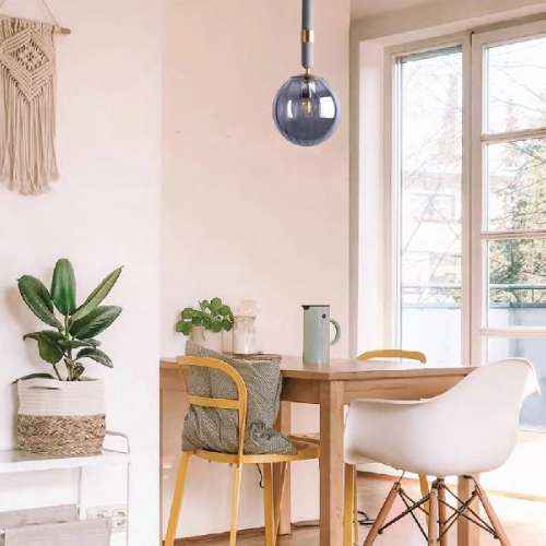 Accentuate your interior with the classic style of this small Crux - H globe pendant design. Sporting a round glass orb that provides beautifully diffused illumination, this pendant looks great over a kitchen island or a bedroom. A polished smokey gold finish complements the downrod and shade cap featured on this appealing pendant design.