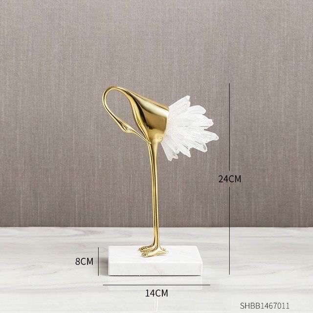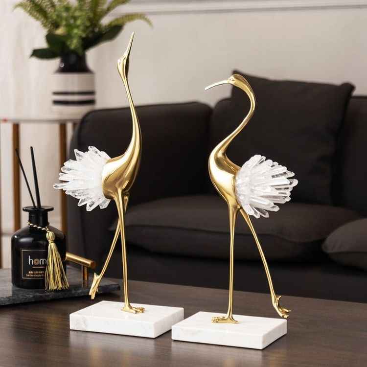 Take a unique approach to your built-ins with the Crystal Crane Sculpture Decor. Crafted with a keen attention to detail, this piece will easily catch the attention of your guests with its originality.A perfect decorative piece to complement any room, this iconic design is an ideal gift idea for any art lover or addition to your own home. Material: Copper, crystal stone and marble
