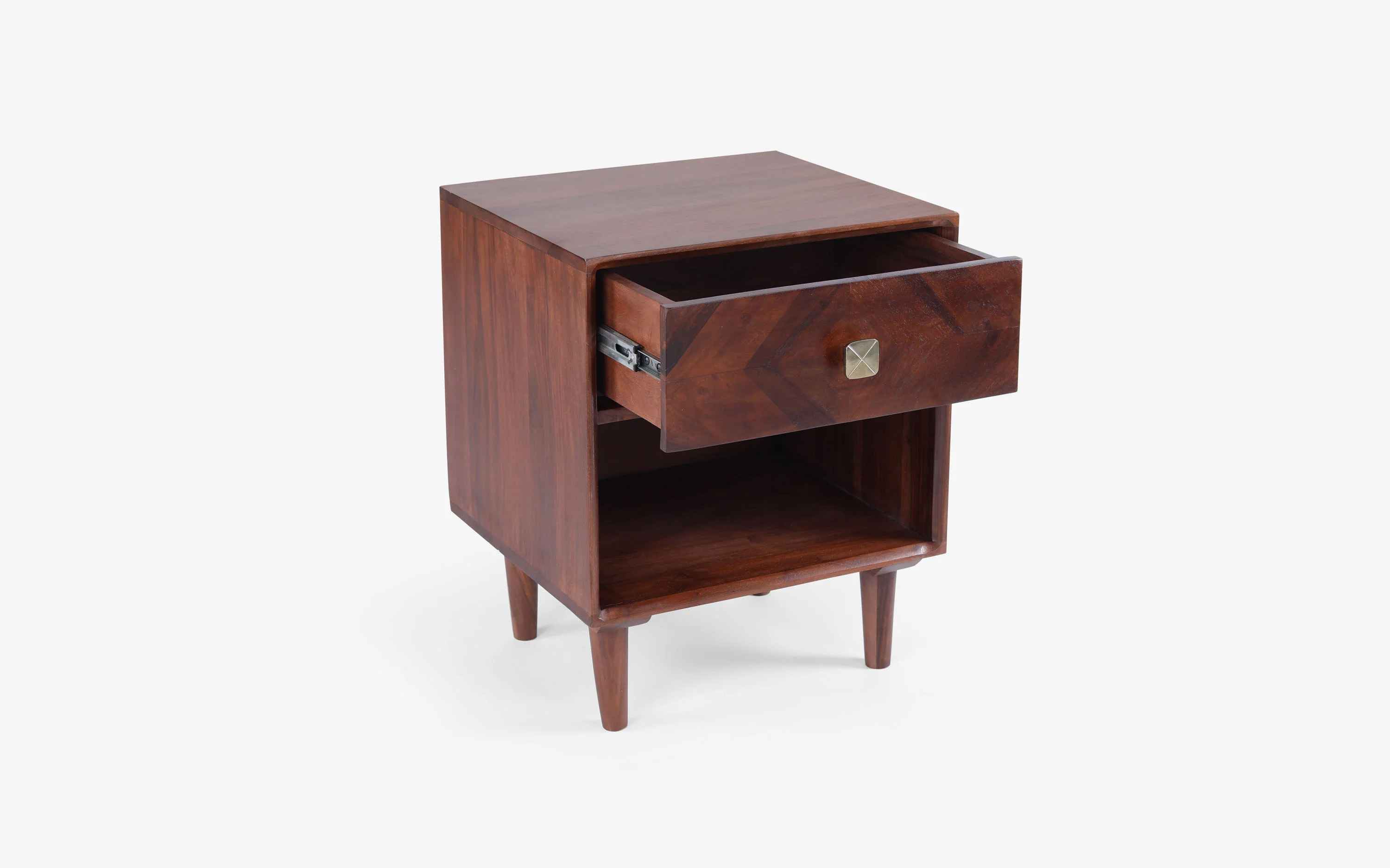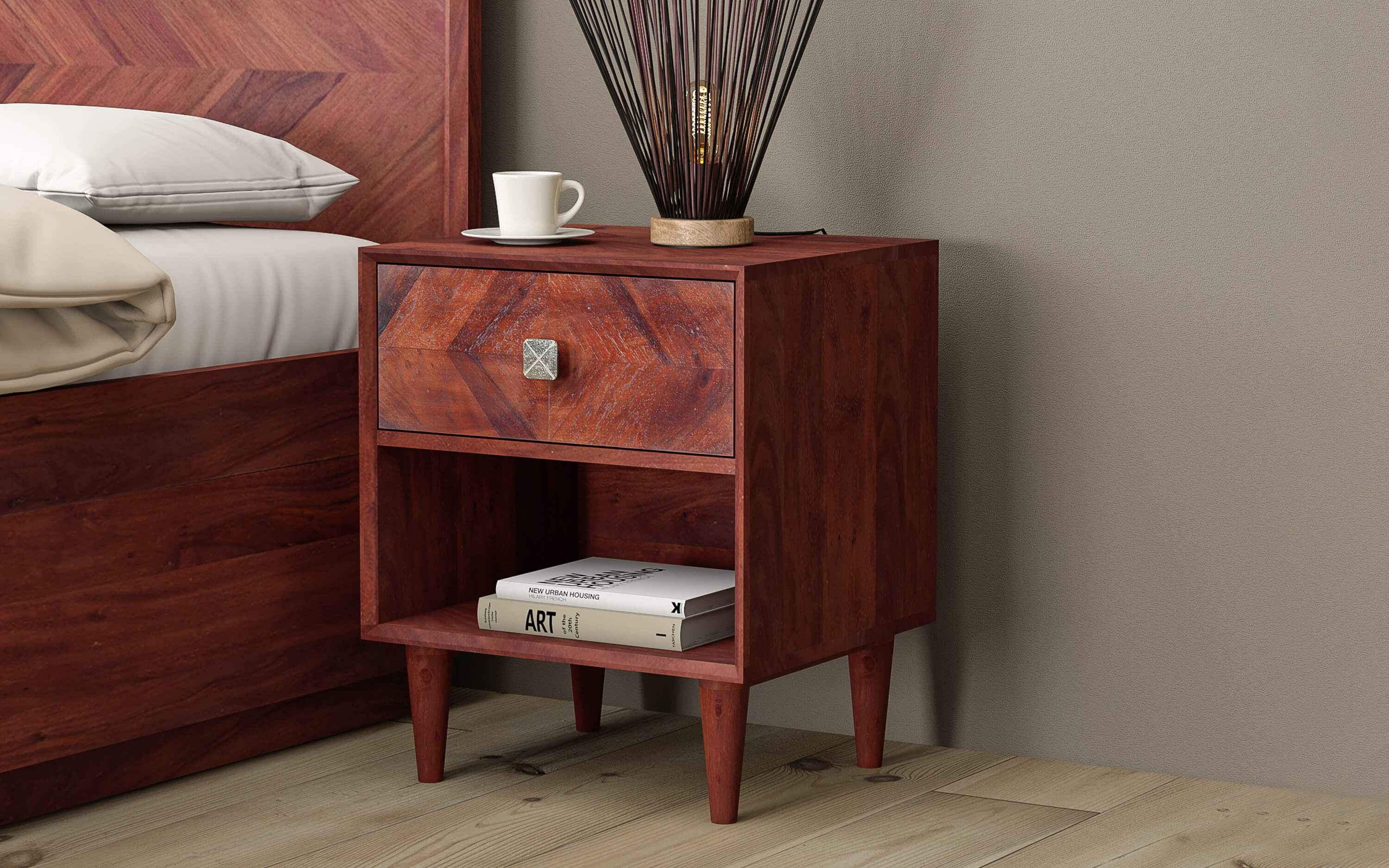 Dado collection ensues a visual treat by creating patterns using the grains of sheesham wood. The symmetry thus formed is achieved with meticulous precision. The wood used is sheesham wood with Autumn Brown finish. Taking minimalism a step ahead is Orangetree’s inspiration with this collection. The Dado Bedside Table is a beautiful, modern looking side table for a bed with a marble top that compliments any bedroom decor. With this perfect addition to your bed, you are sure to be sure to enjoy the beauty of some new furniture for your bedroom! "Depending on your screen settings and resolution on your device there may be a slight variance in fabric color and wood polish of the image and actual product. Wood grains will vary from product to product in case of solid wood furniture."